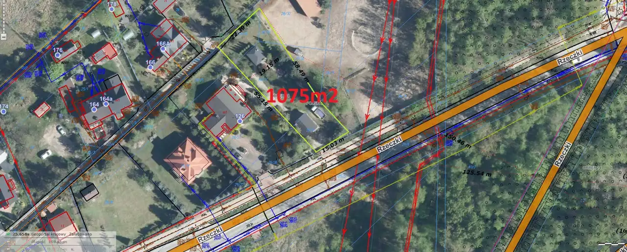 - Na powierzchnię 1075m2 składają się cztery działki 28/31,29/31,28/29,28/26 obręb 4, arkusz 4. Działki mają kształt nieregularny, o wymiarach około 15 m x 58,5 m x 22 m x 55 m, z dostępem do drogi asfaltowej, ul. Rzeczki, około 15 m. Patrząc w głąb działki rozszerza się do 22m. Działki 28/31,29/31 mają wydaną aktualną DECYZJĘ O WARUNKACH ZABUDOWY dla inwestycji polegającej na budowie budynku mieszkalnego jednorodzinnego dnia 11.03.2026r.