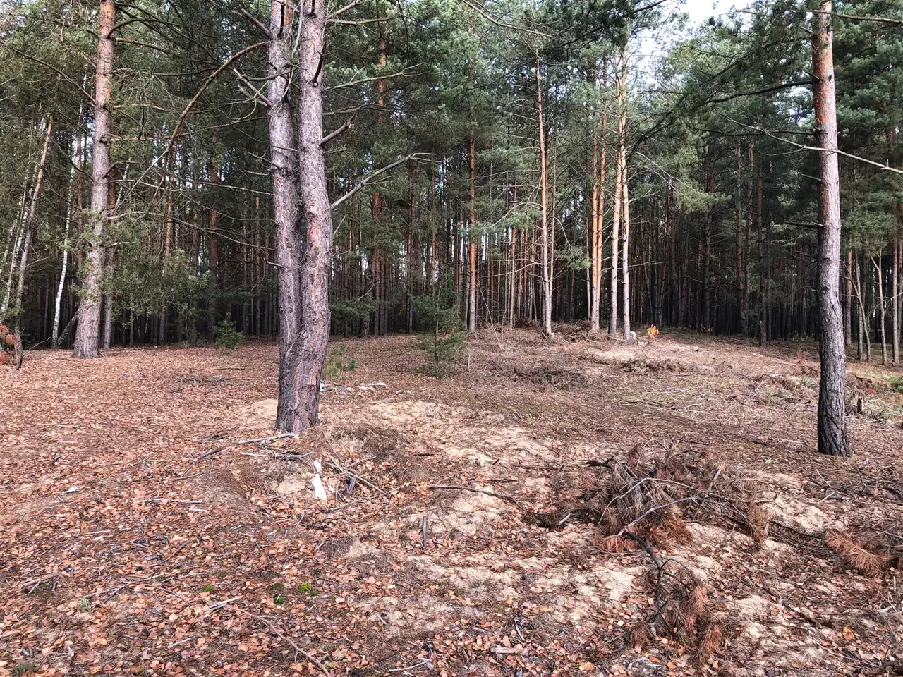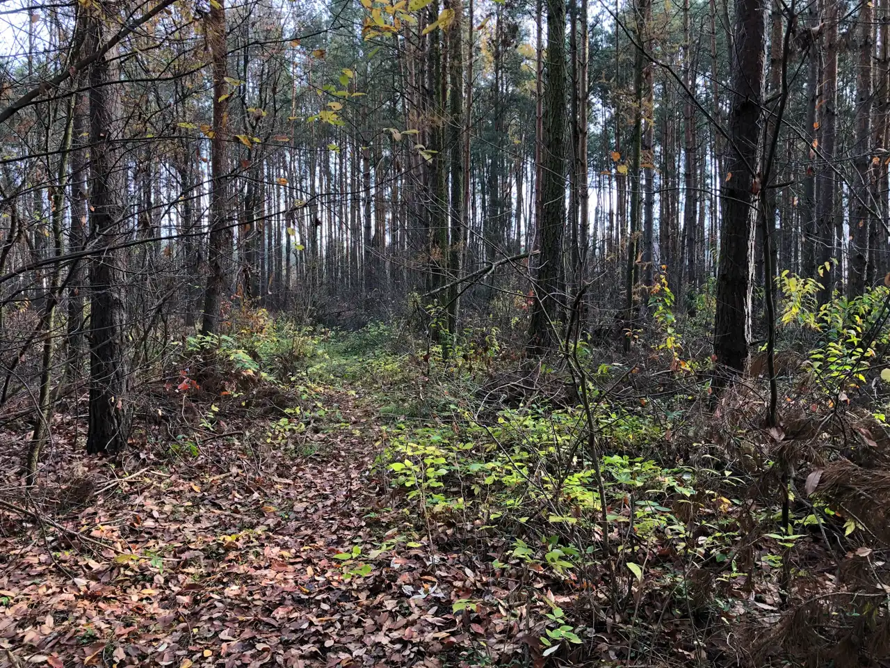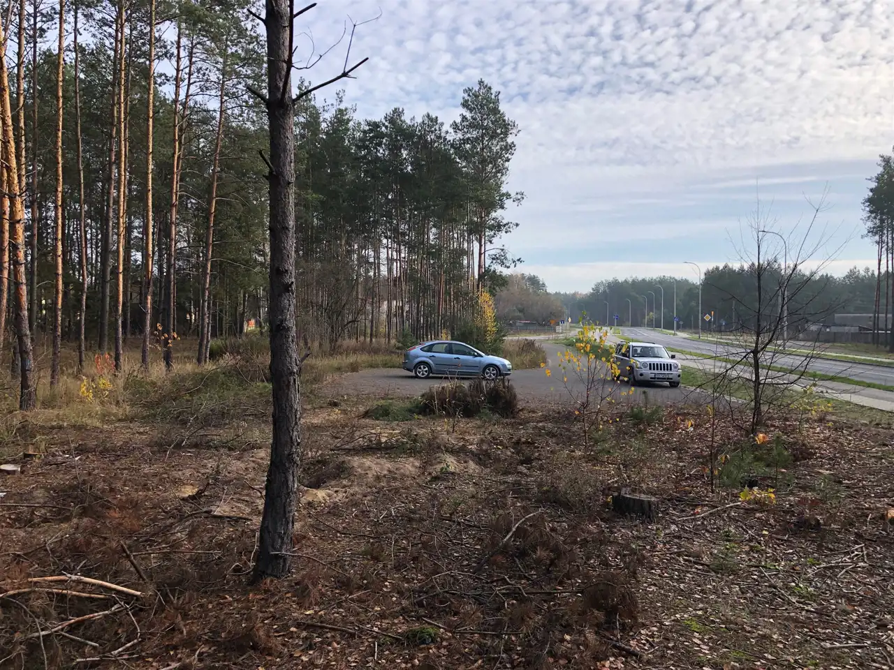 Wszystkie media w ulicy przy granicy działki, część działki stanowi las ze starymi drzewami sosnowymi.