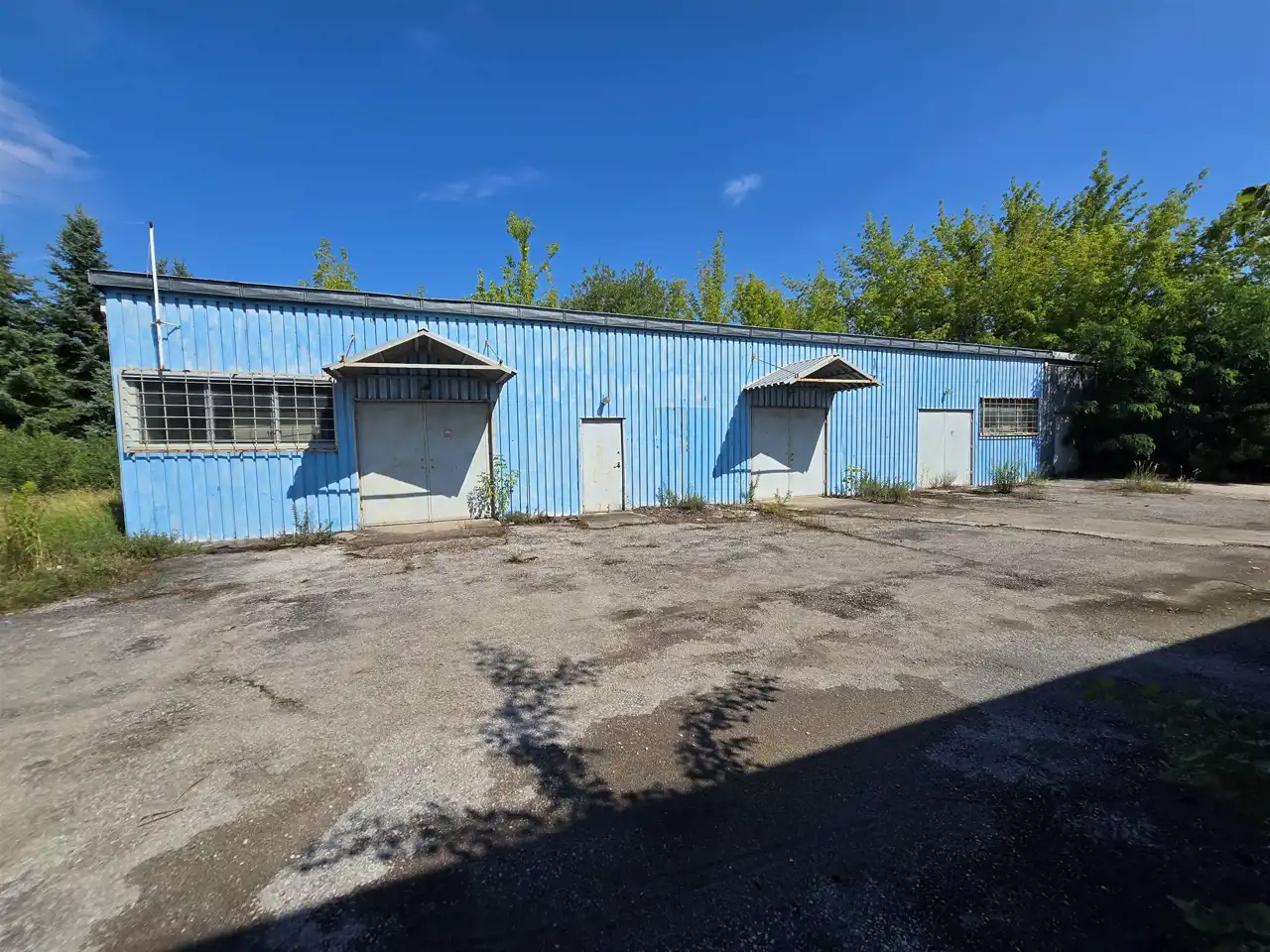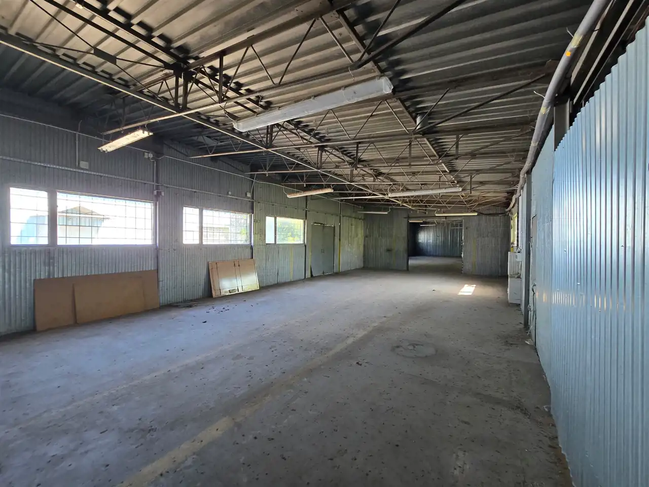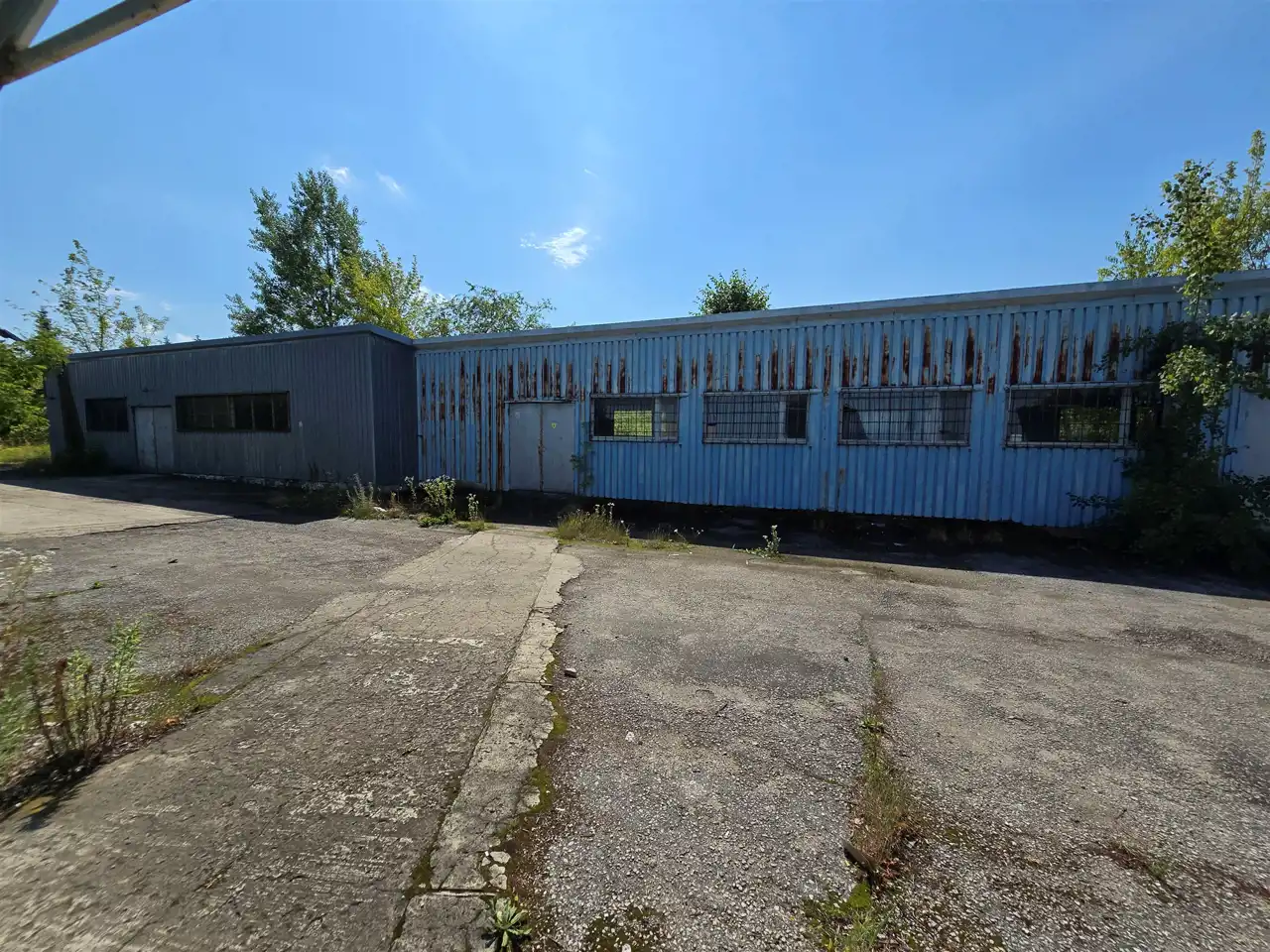 hale o konstrukcji metalowej (blacha trapezowa o wysokości ok. 3,5 m. Głowna hala magazynowa 400 m2, warsztat o pow 227 m2 oraz budynek malarni o pow. 200m2. W halach woda, prąd oraz pomieszczenia socjalno-gospodarcze.