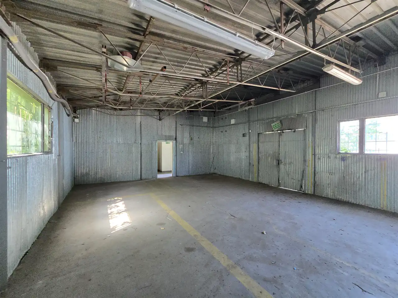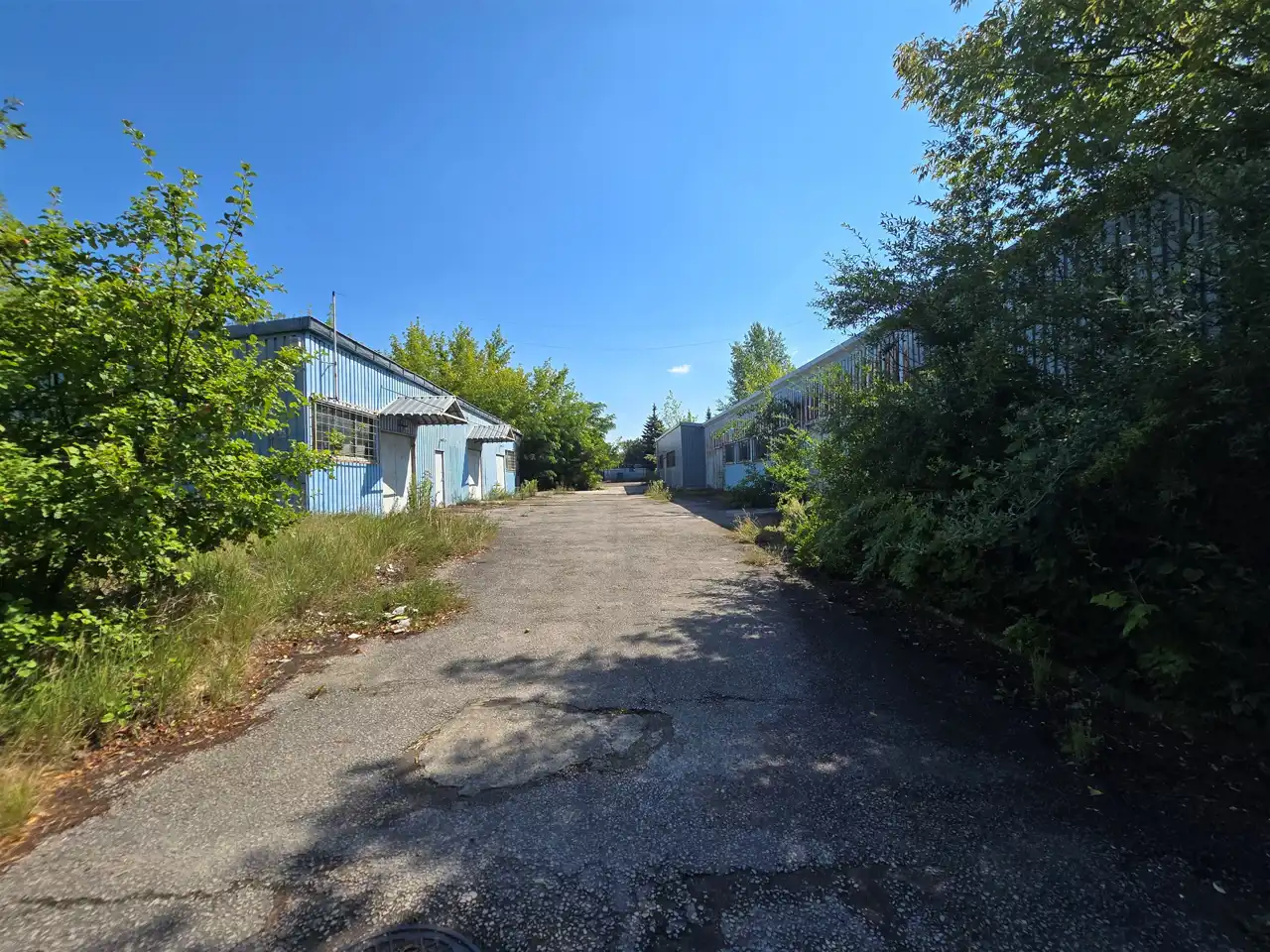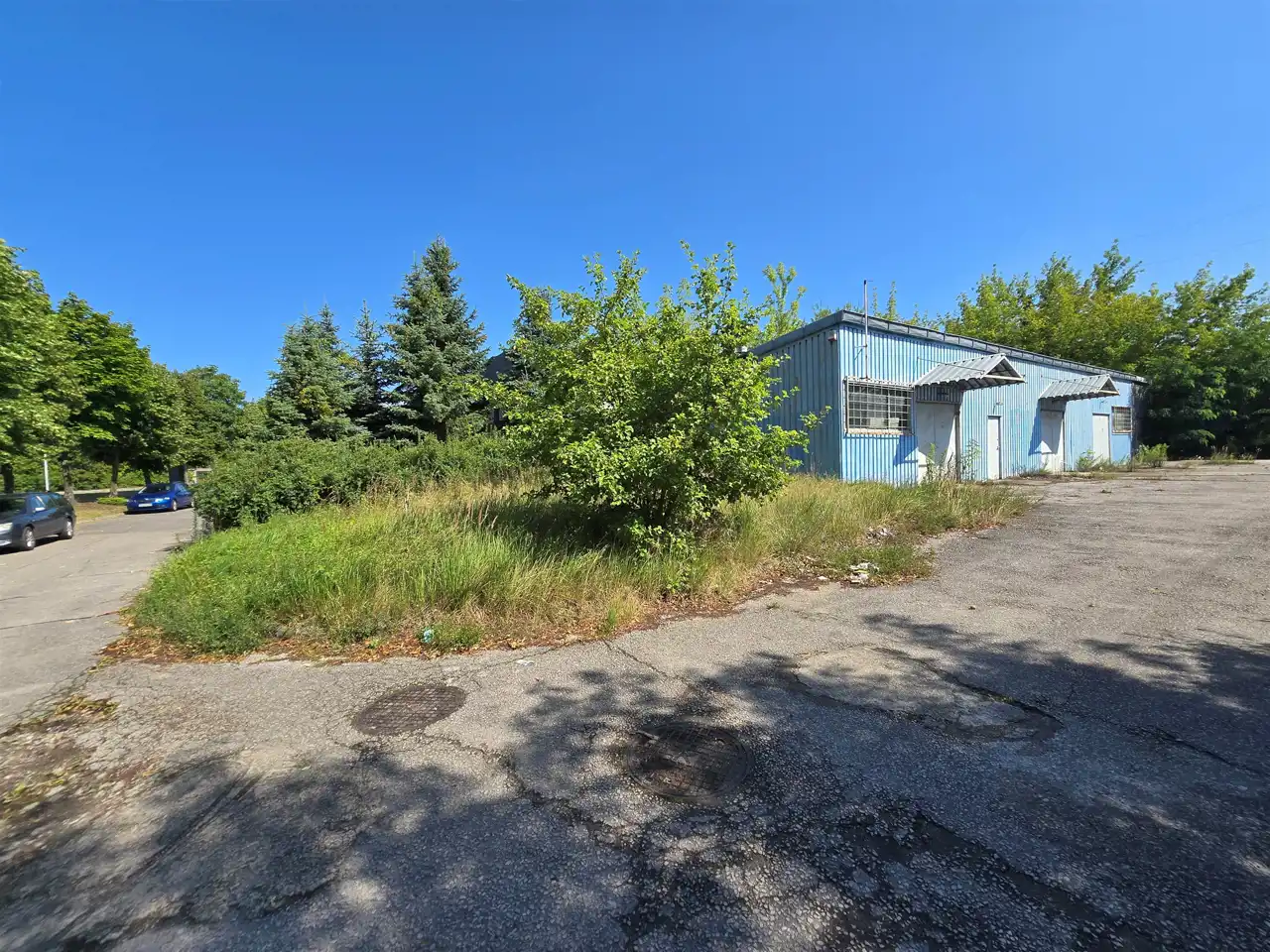 hale o konstrukcji metalowej (blacha trapezowa o wysokości ok. 3,5 m. Głowna hala magazynowa 400 m2, warsztat o pow 227 m2 oraz budynek malarni o pow. 200m2. W halach woda, prąd oraz pomieszczenia socjalno-gospodarcze.