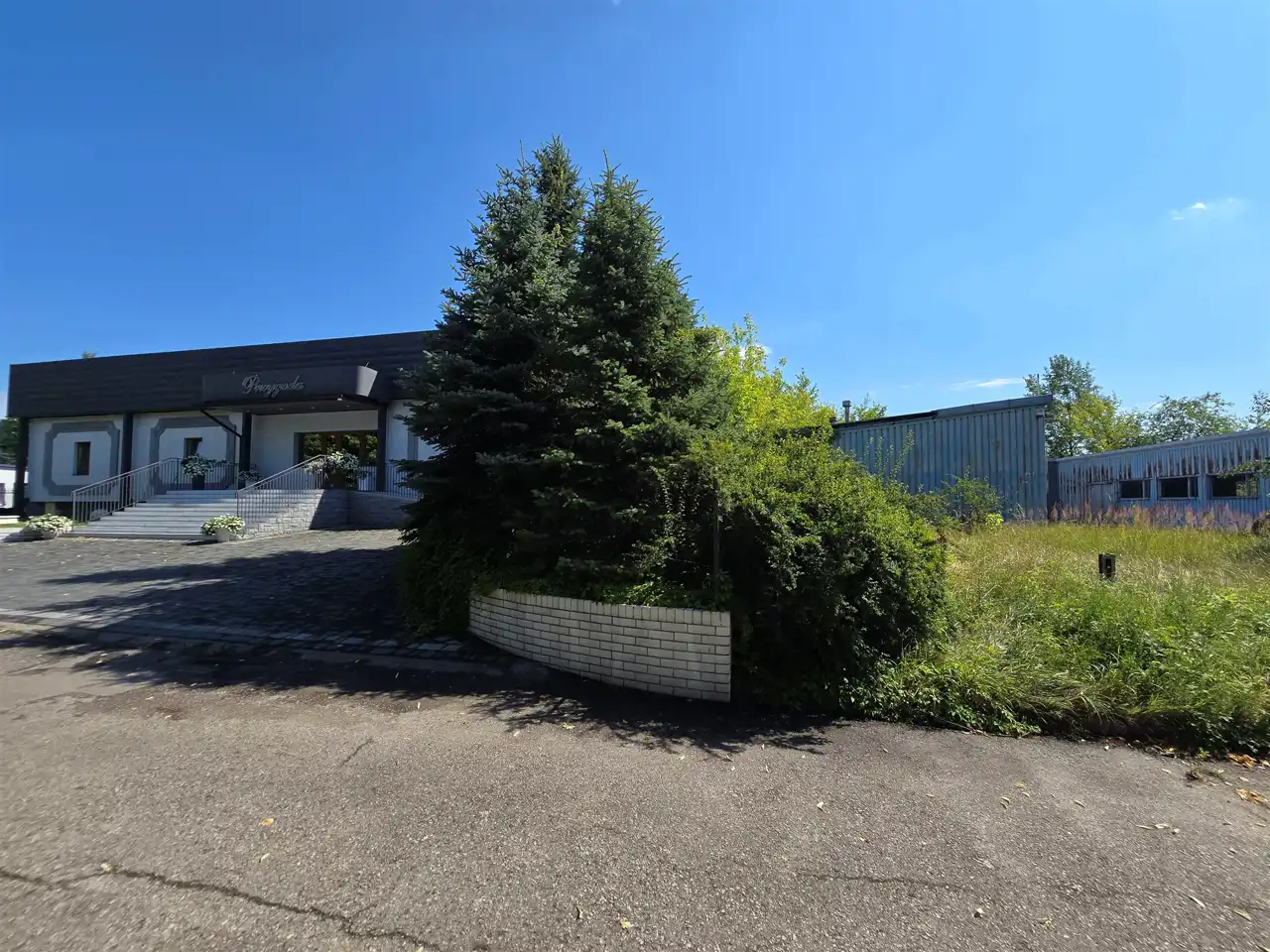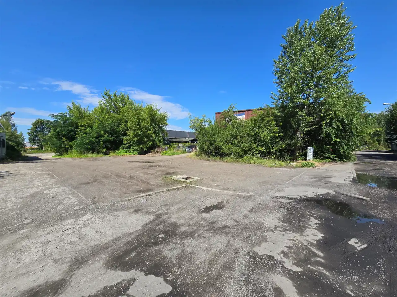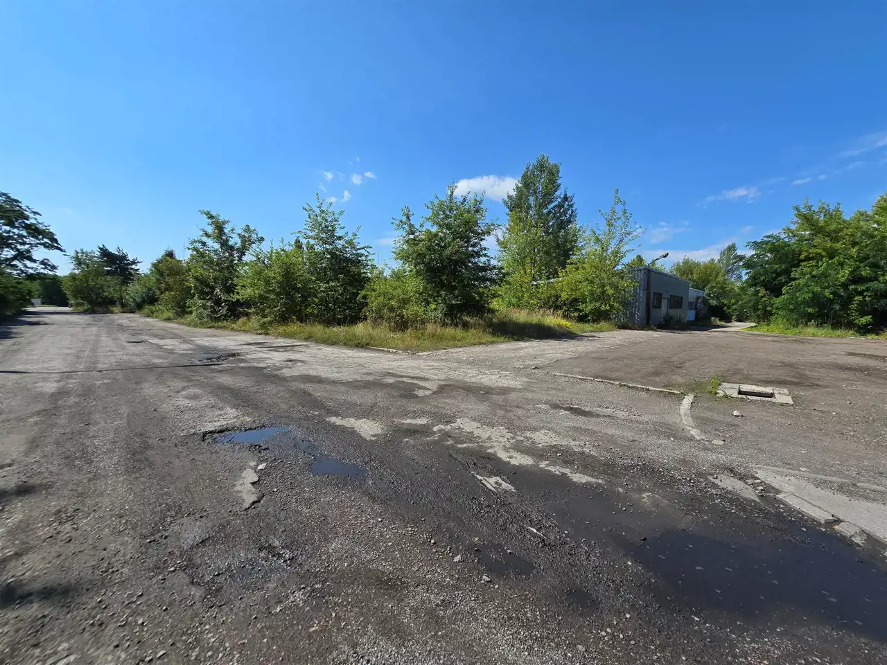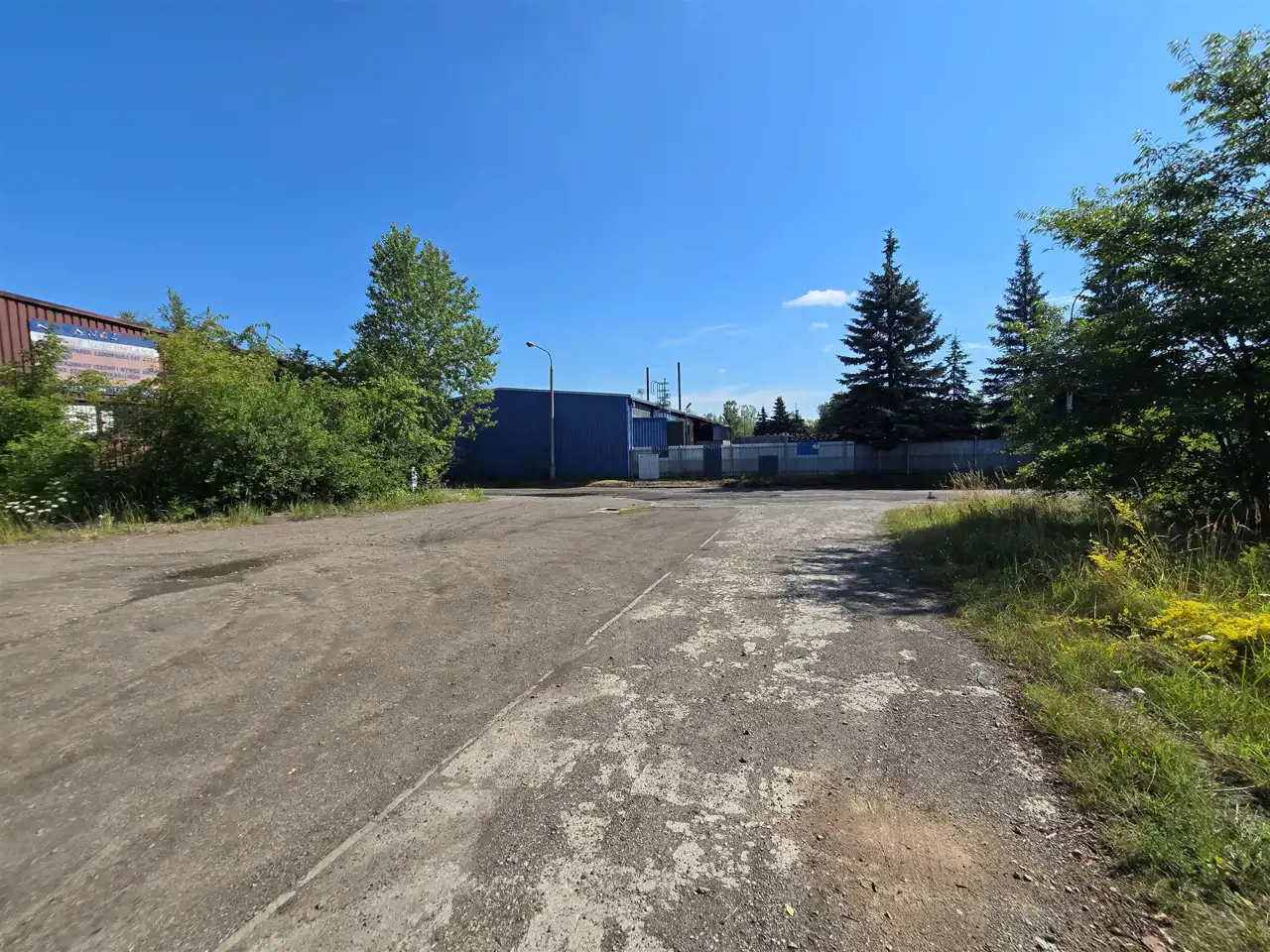 Dojazd o nieruchomości z 2 stron, teren dojazdowy to asfalt, teren utwardzony pomiędzy halami magazynowymi,