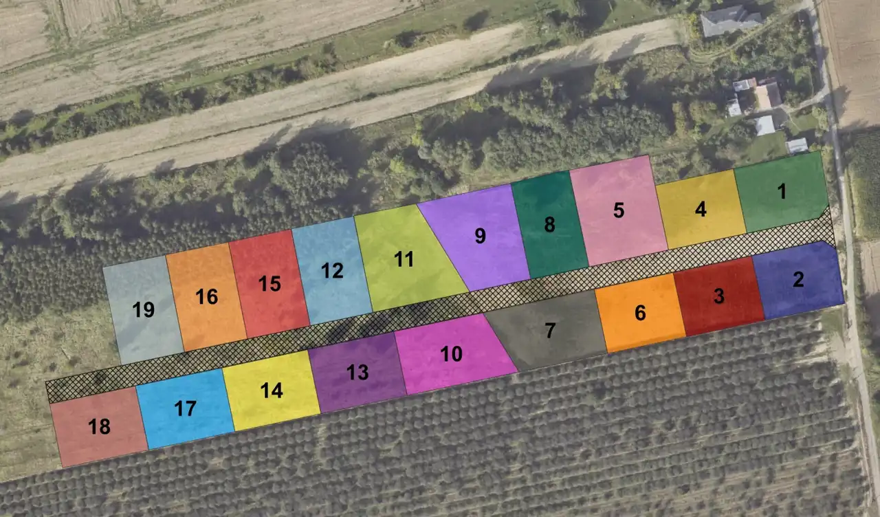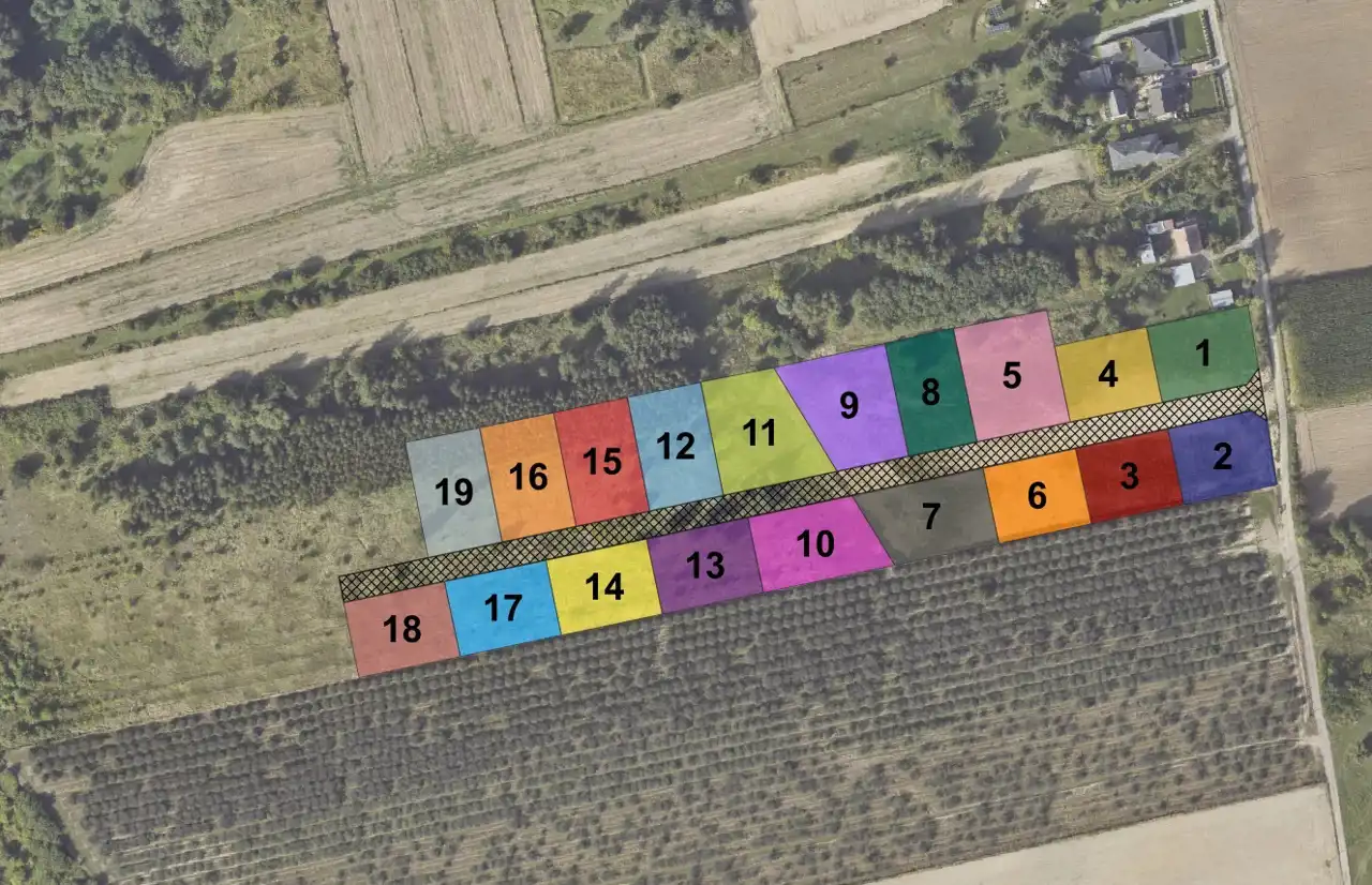 Na sprzedaż są wystawione następujące działki od nr. 9 do 19: