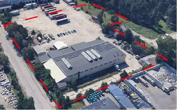 Outside, there is a large paved yard made of reinforced concrete slabs, providing convenient access and maneuvering for trucks, as well as a brick building with an area of approx. 150 m² used for storage.