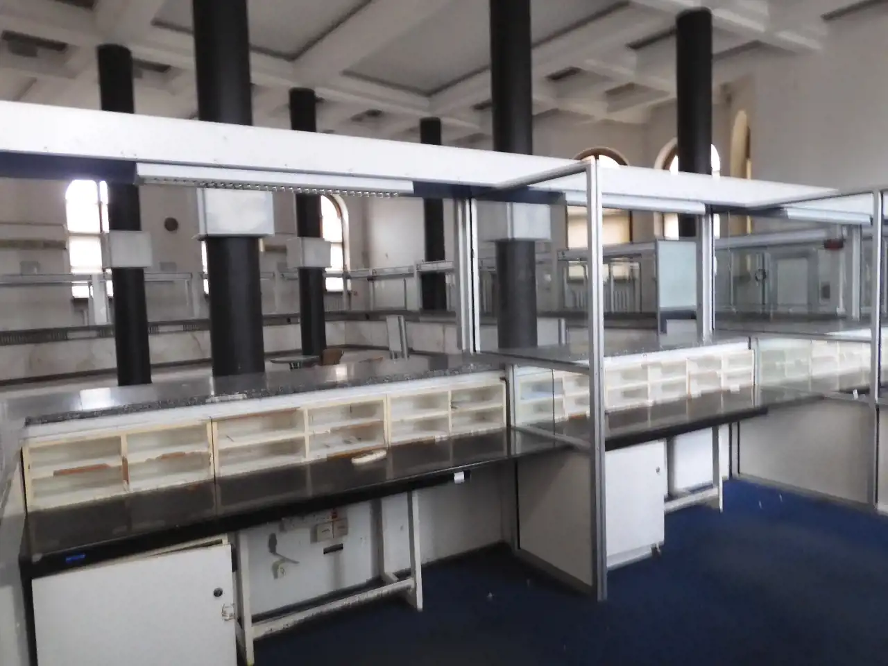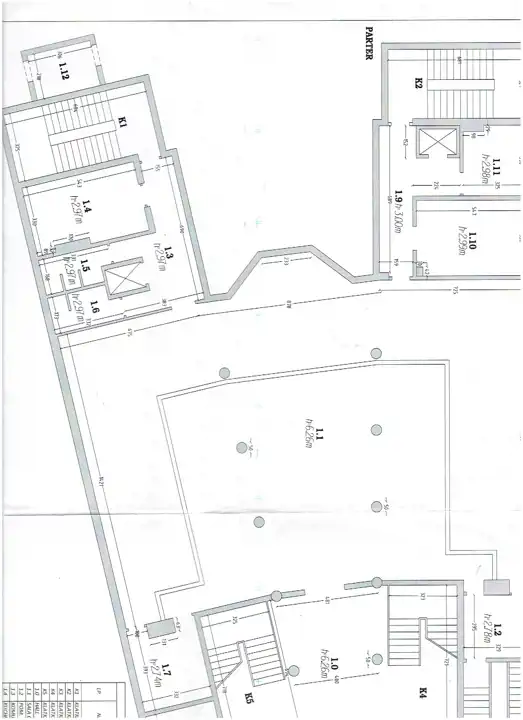Główna sala operacyjna byłego banku- powierzchnia usługowo handlowa h=6,26m o pow. 299m2 plus 5 pomieszczeń biurowych o pow.9,75m2, 12,32m2, 11,99m2, 19,35m2, 10,44m2. ; pomieszczenie socjalne; dwie łazienki; pomieszcenie do składowania odpadów h=2,97 m