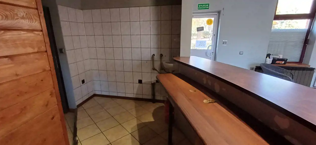For rent: a 93.93 m² premises located in a row of commercial and service pavilions in Ostrowiec, Pułanki estate. The premises are adapted for gastronomic activities but can be adjusted for other purposes after adaptation. A summer garden of 13.56 m² is included.