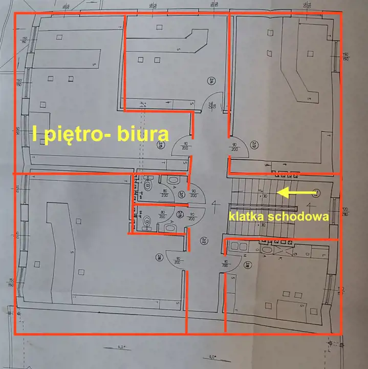 2. I PIĘTRO: to lokale biurowe o powierzchniach: 25, 35, 41 i 43 m2. toaleta damska 3 m2, toaleta męska 3 m2, pomieszczenie socjalne 16,80 m2.
