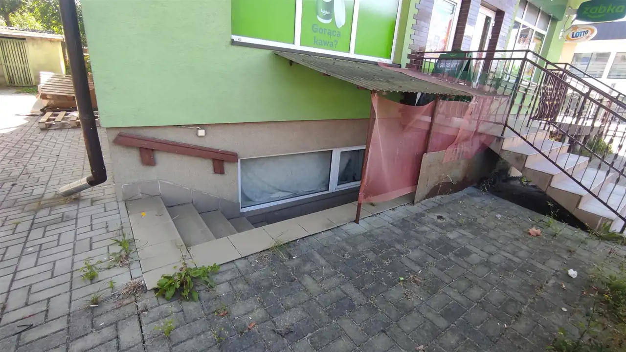 Lokal znajduje się na poziomie -1 budynku, w którym dobrze prosperuje kilka firm, mi.n "Żabka".