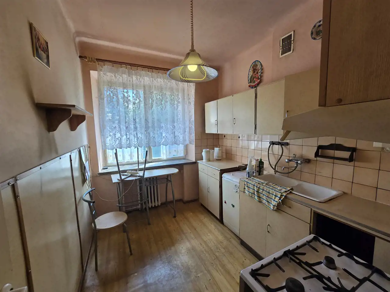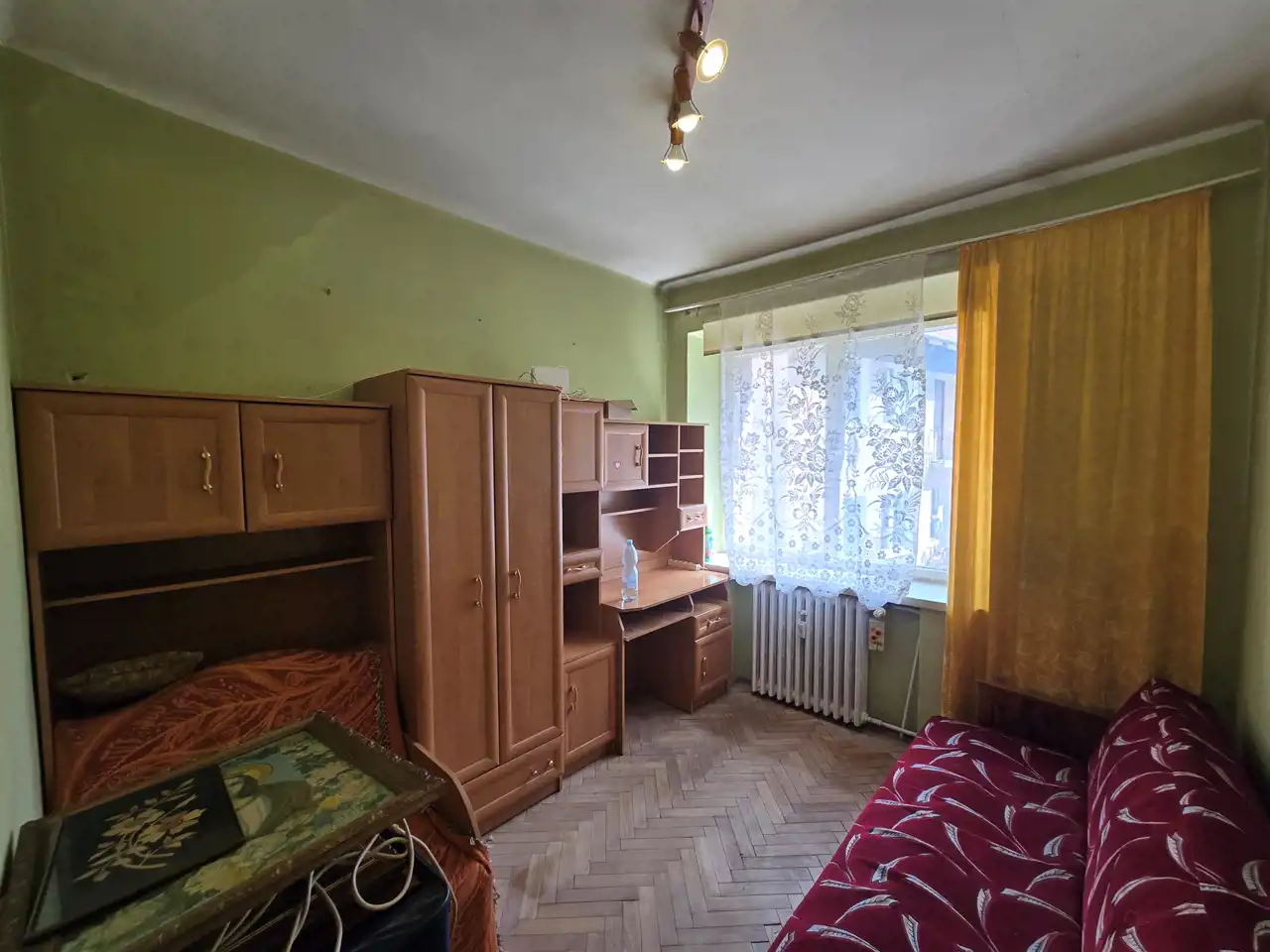Okna wymienione częściowo, na podłogach parkiet do cyklinowania.