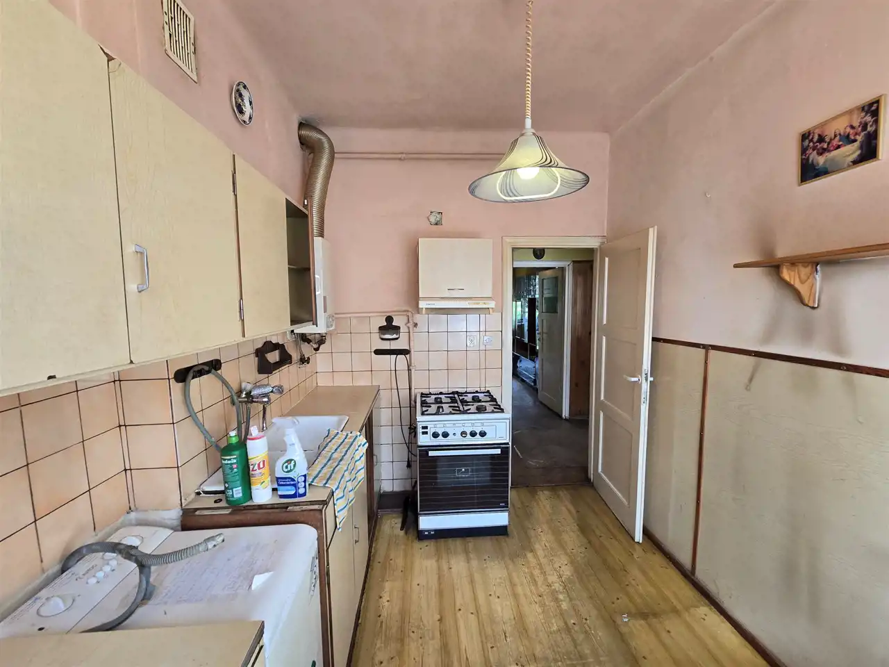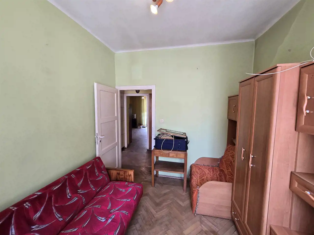 Mieszkanie dwustronne (północ-południe), przeznaczone do remontu, posiada dwa ustawne pokoje (jeden z balkonem), widną kuchnię (terma), łazienkę i przedpokój.