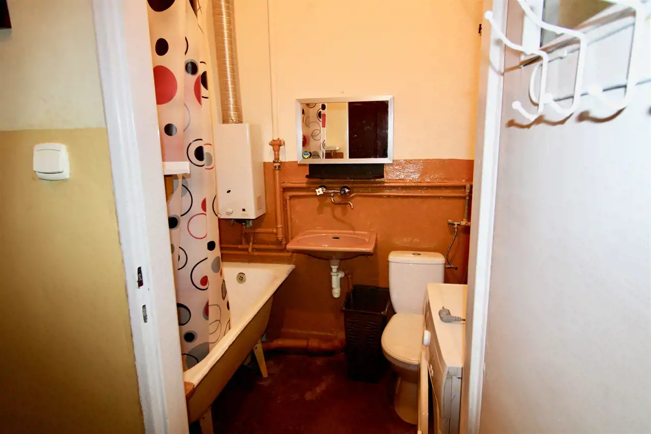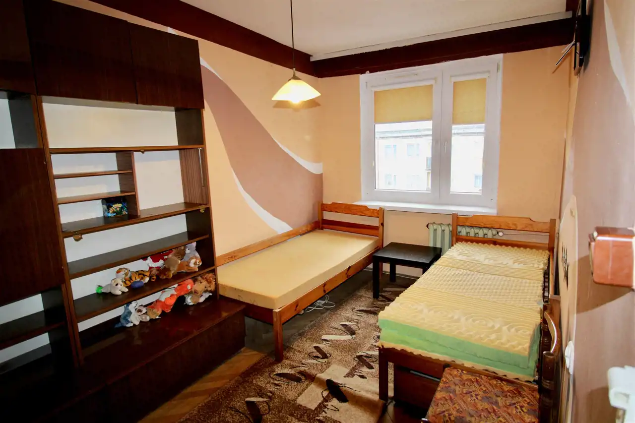 Lokal nieremontowany od lat 80-tych, znajdują się w nim 3 pokoje, kuchnia z oknem stanowiącym przepierzenie oddzielające duży pokój i kuchnię, łazienka z wanną, przedpokój.