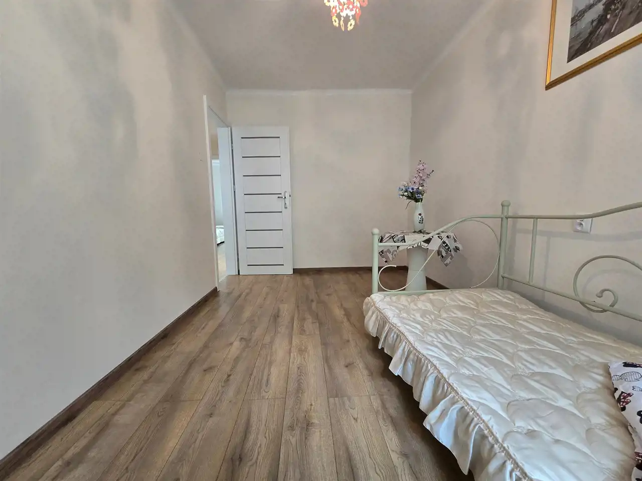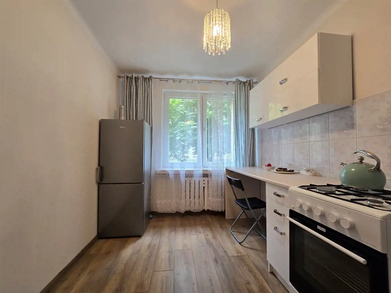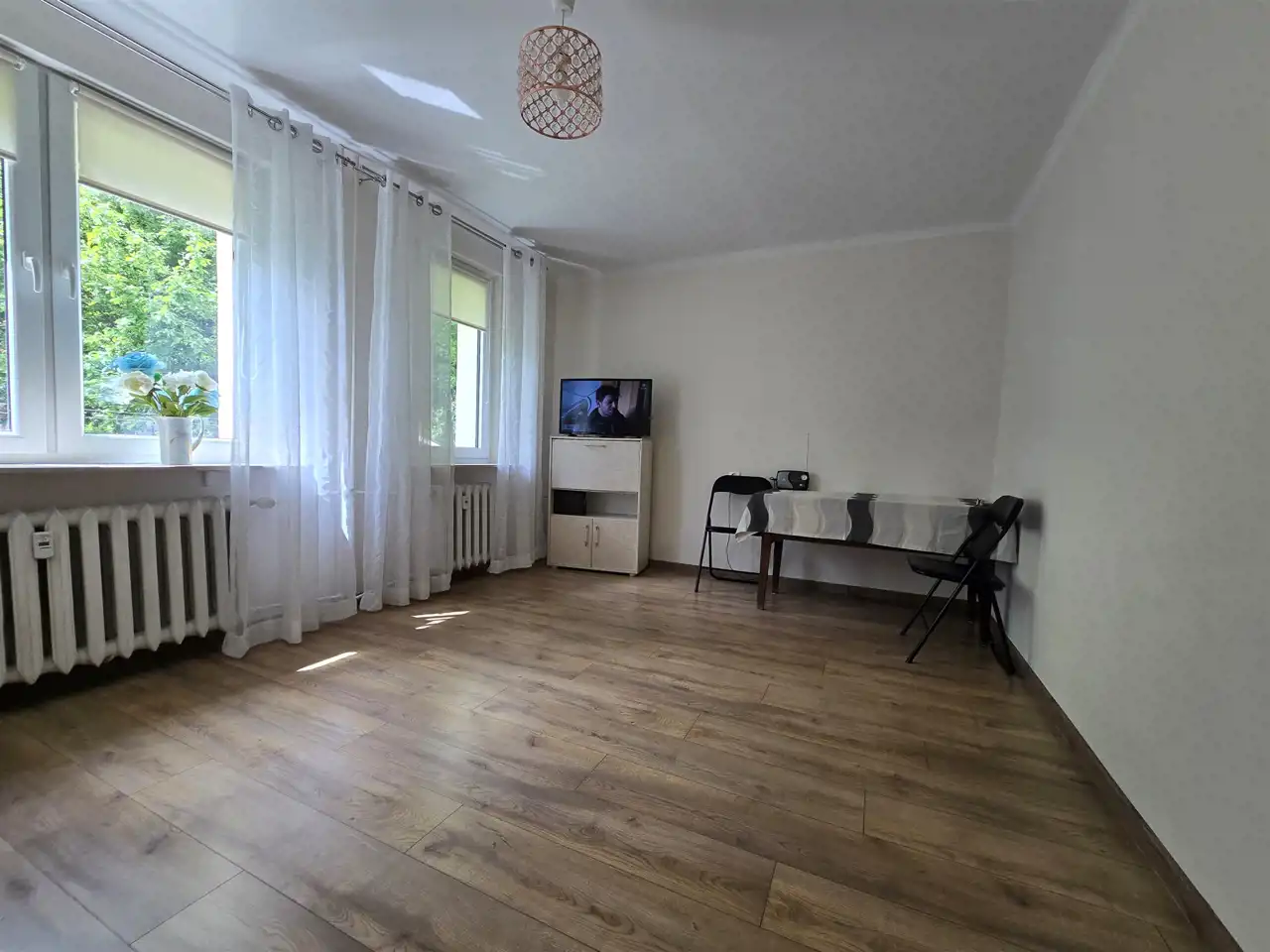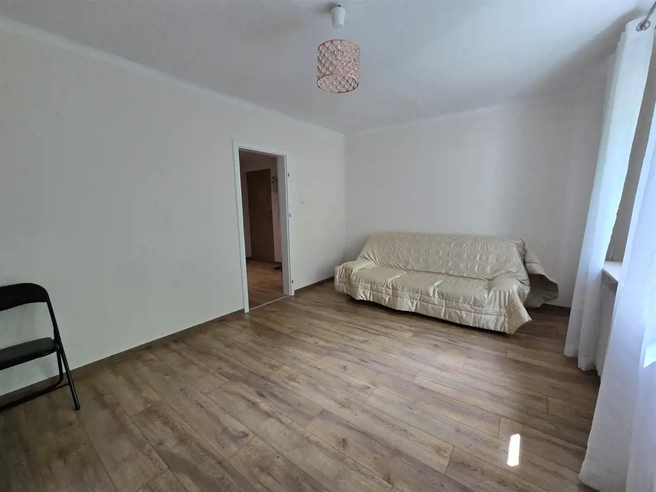 Okna PCV, na ścianach gładzie, na podłodze nowe panele i płytki, nowe drzwi zewnętrzne i wewnętrzne.