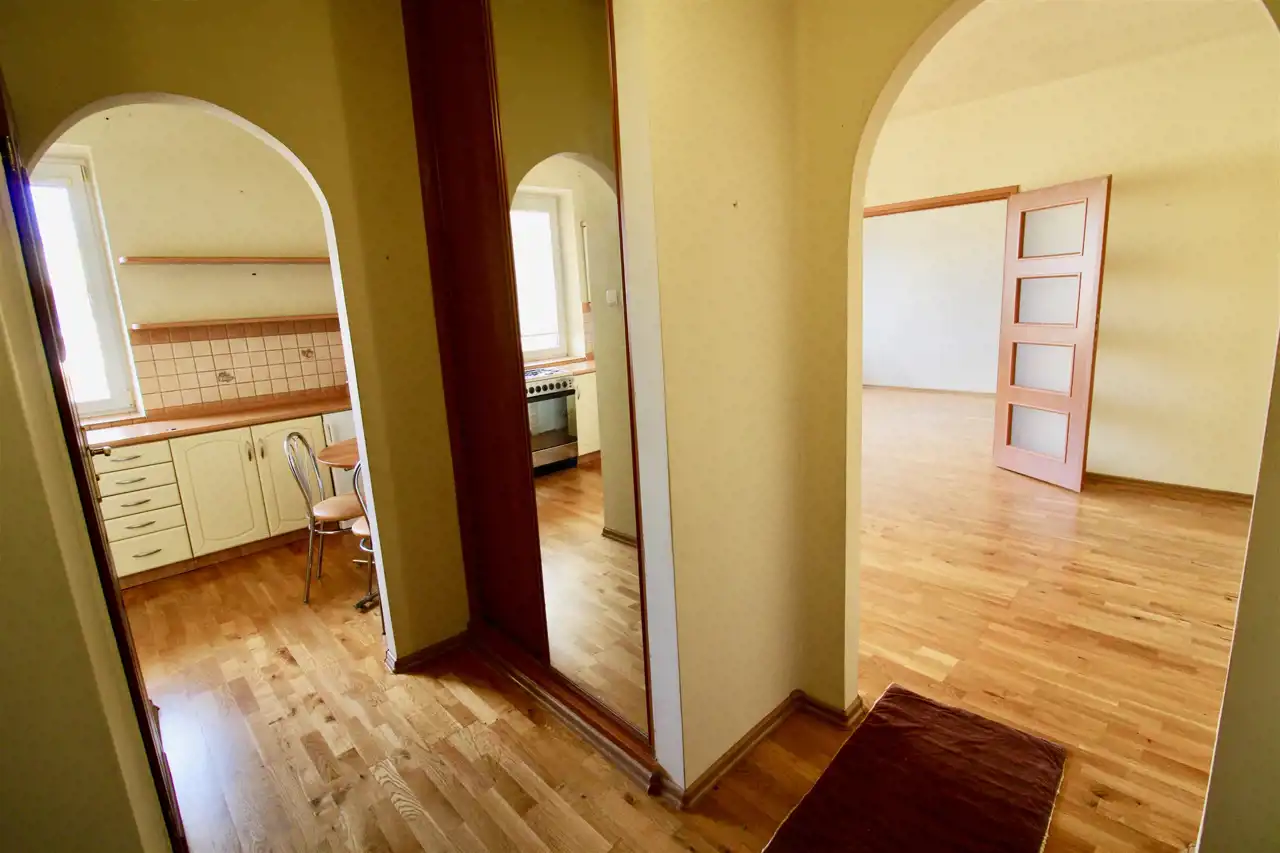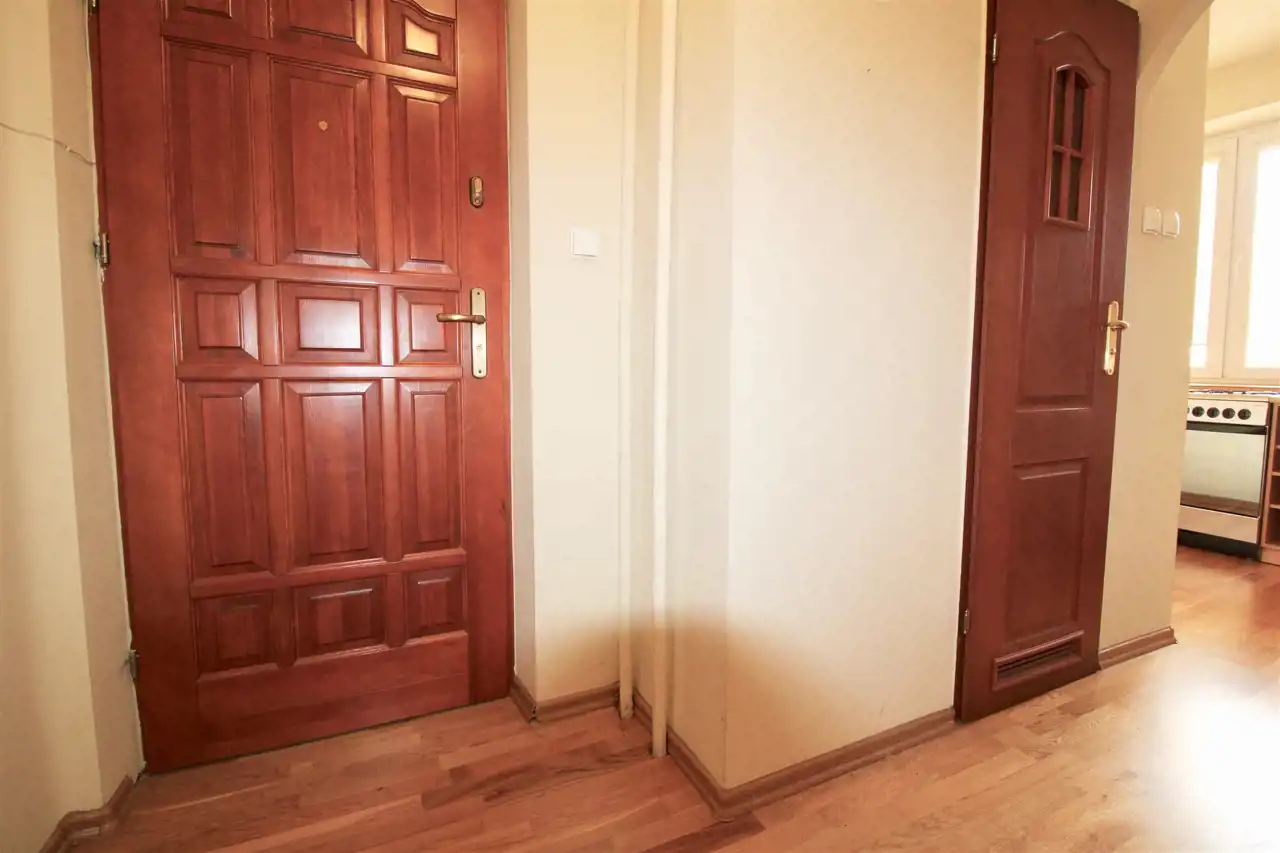 -Na podłogach deska, okna PCV. Blok jedno-klatkowy z domofonem, spokojni sąsiedzi.