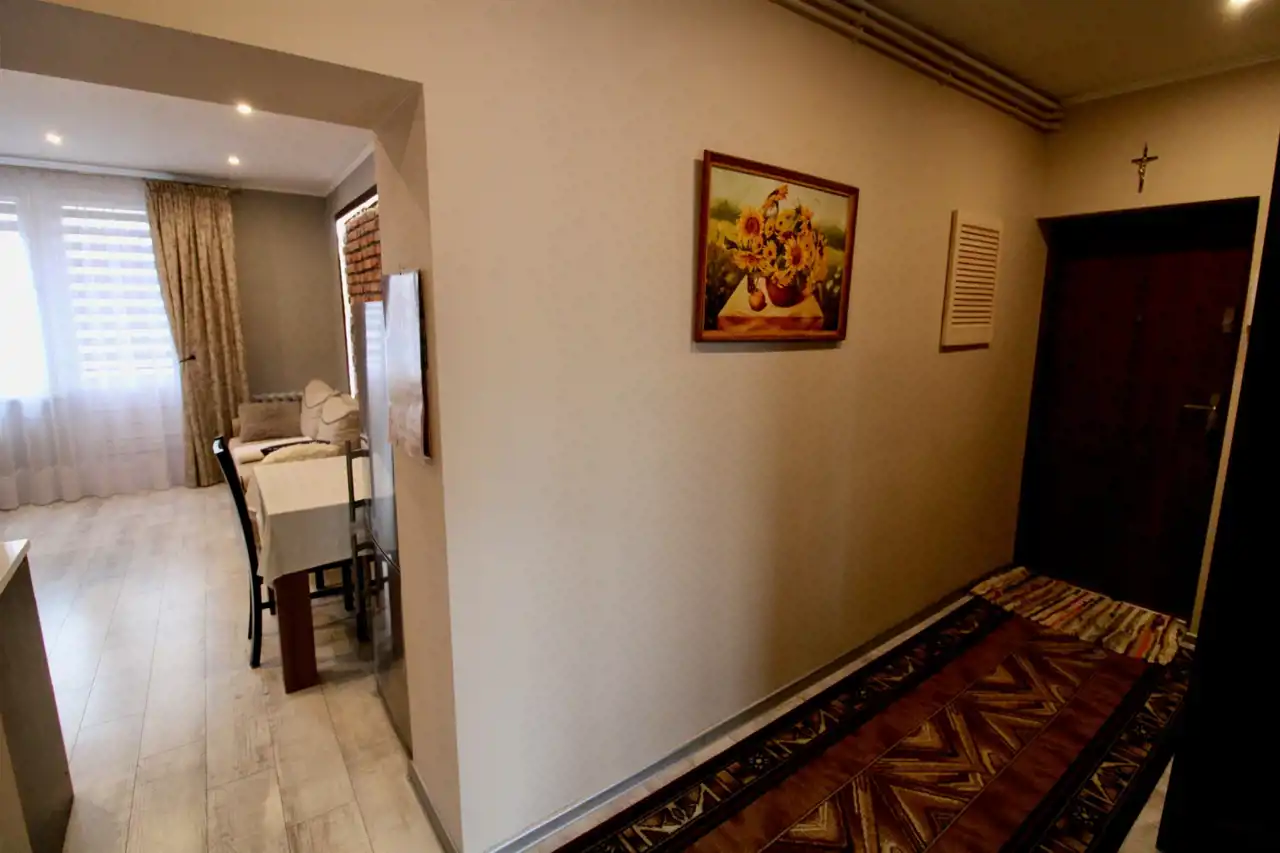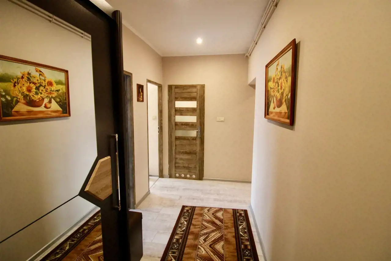 Okna PCV, na podłogach płytki, w pokojach panele nowego typu, nowe drzwi zewnętrzne i wewnętrzne, wymieniona instalacja elektryczna i hydrauliczna.