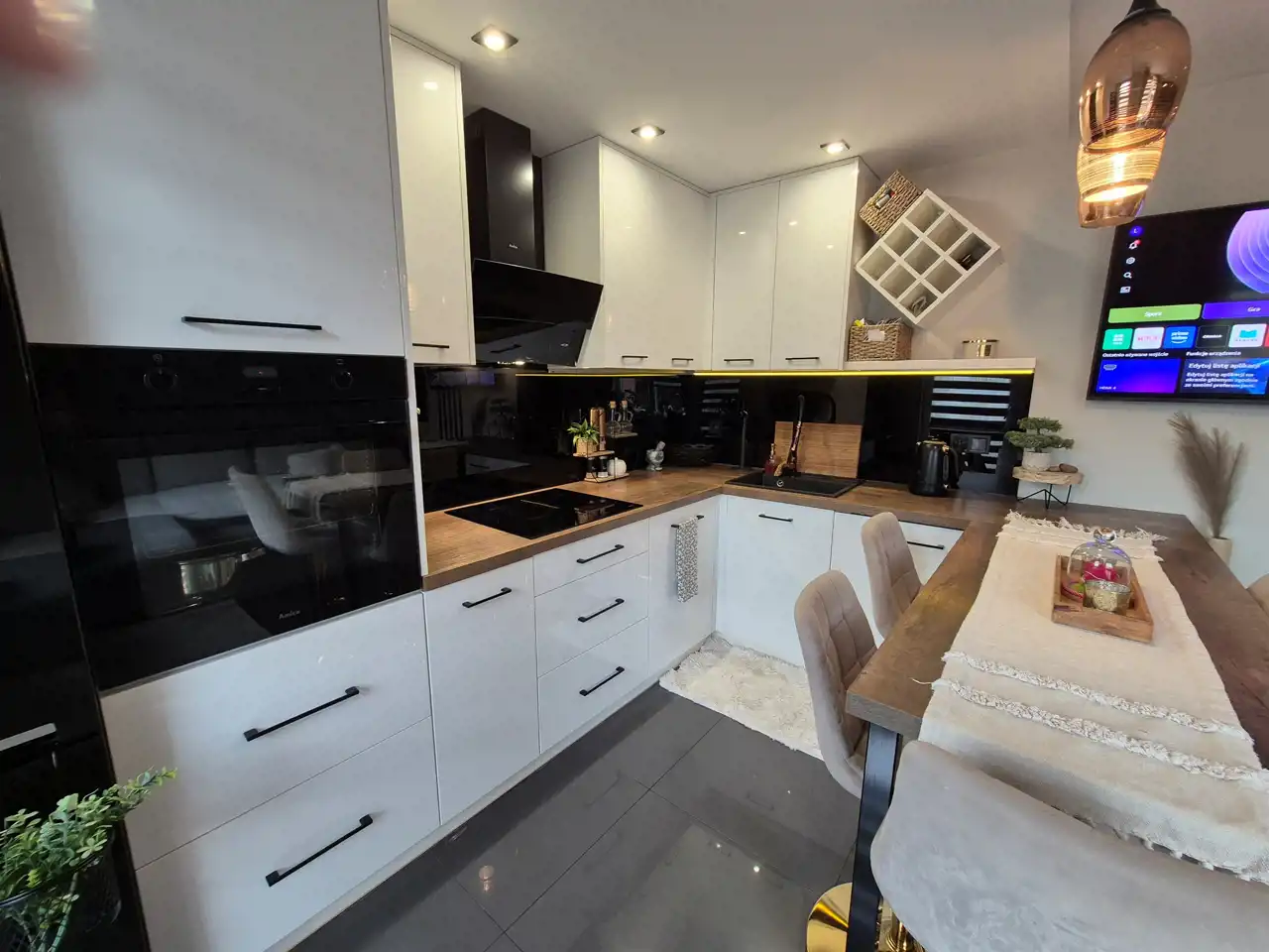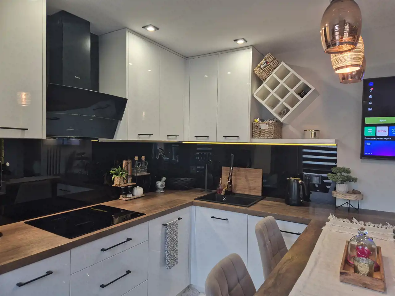 Mieszkanie 2-stronne wschód-zachód, okna PCV, panele podłogowe, kuchnia w nowej zabudowie kuchennej.