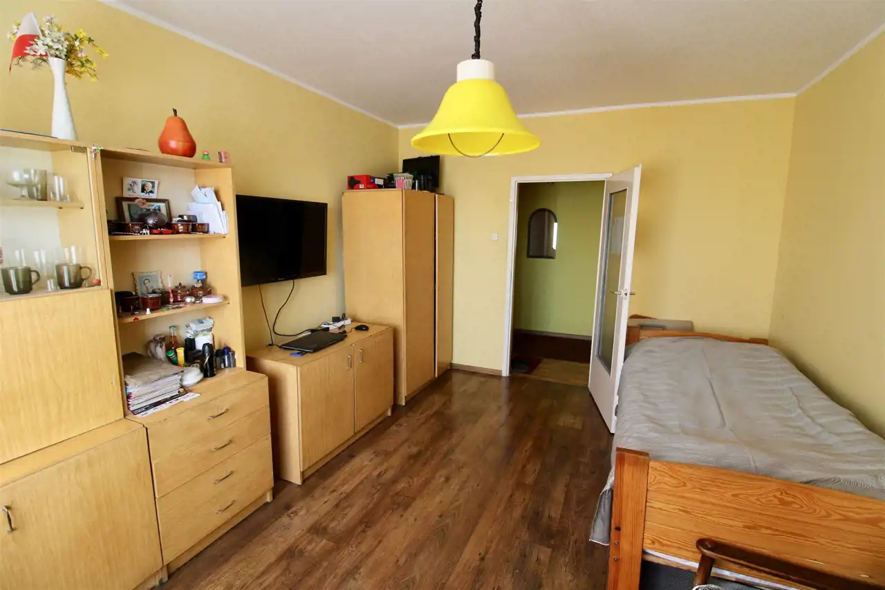 Okna wymienione na PCV, w pokojach na podłodze panele, w łazience i WC płytki.