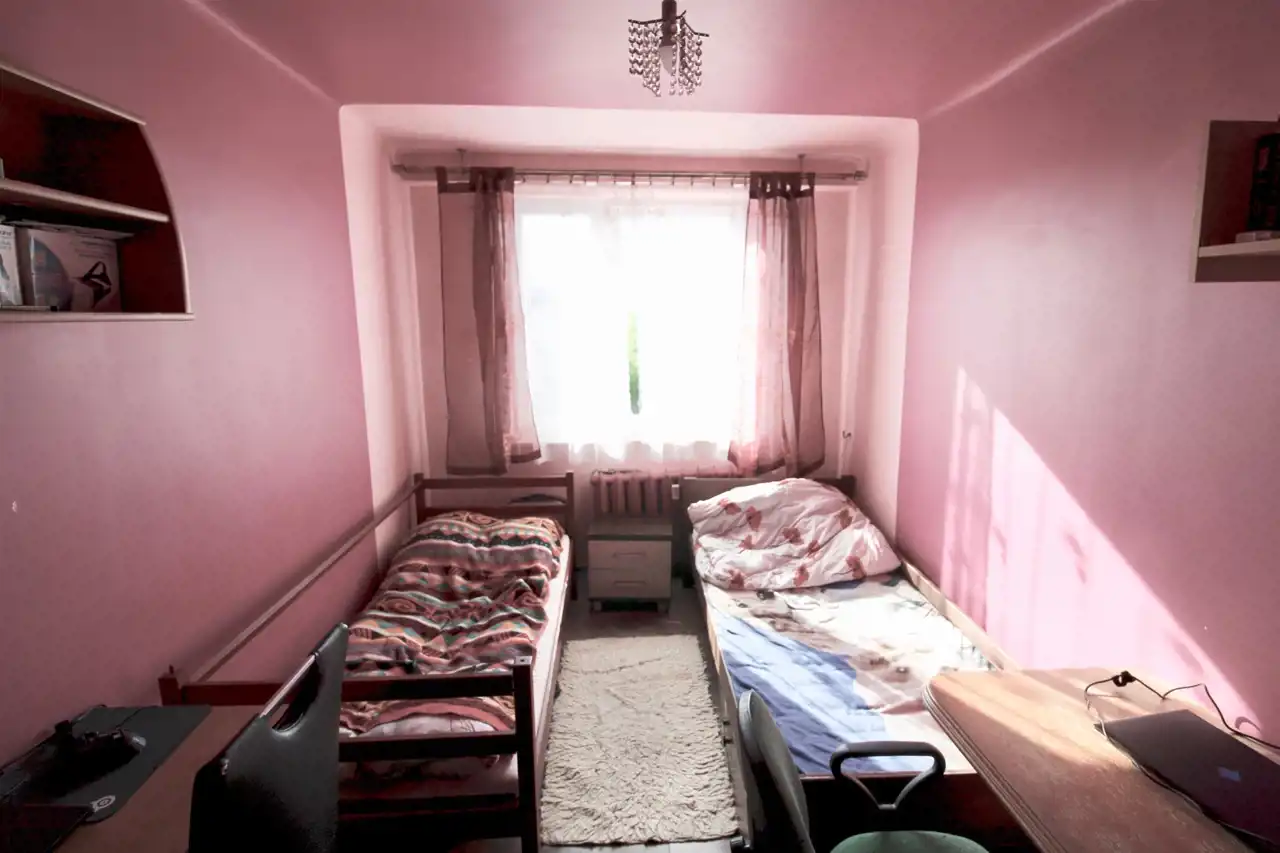 Składa się ono z trzech pokoi (jeden z balkonem), kuchni, łazienki, toalety i przedpokoju.