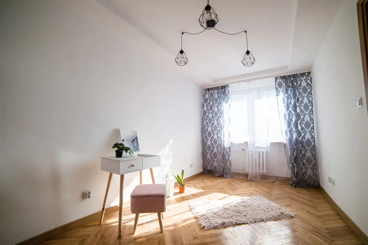 Niewątpliwym plusem jest bardzo dobry układ funkcjonalny mieszkania – przestronny salon z aneksem kuchennym - wyposażony w nowoczesne meble kuchenne oraz wydzielona część prywatna – intymna sypialnia, w której zmieści się zarówno duże małżeńskie łoże jak i szafa w zabudowie oraz pokój, który może pełnić funkcję gabinetu lub pokoju dziecięcego.