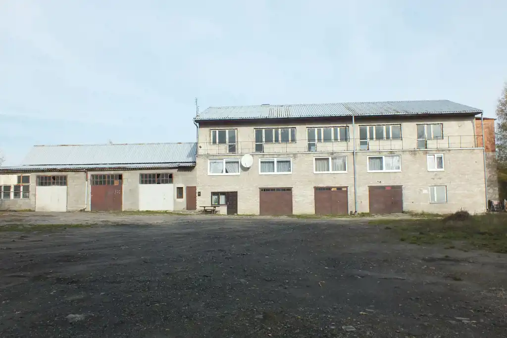 - I kondygnacja: 4 hale o h=4m., wysokość wrót h=3,5m.; 3 garaże; ; dwa mieszkania (byłe pomieszczenia biurowe).