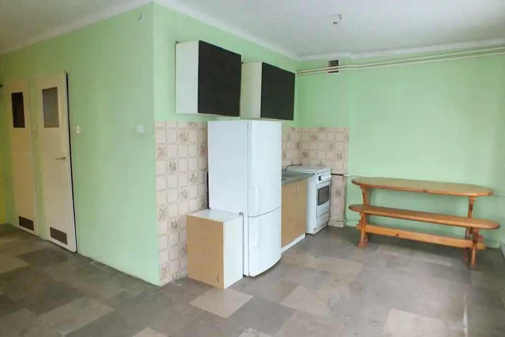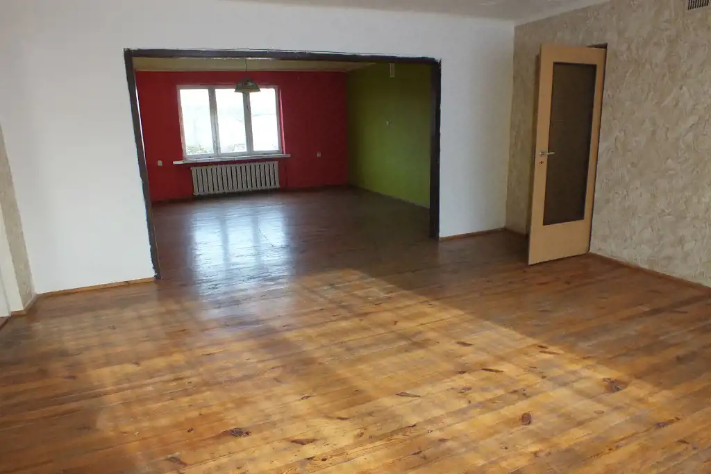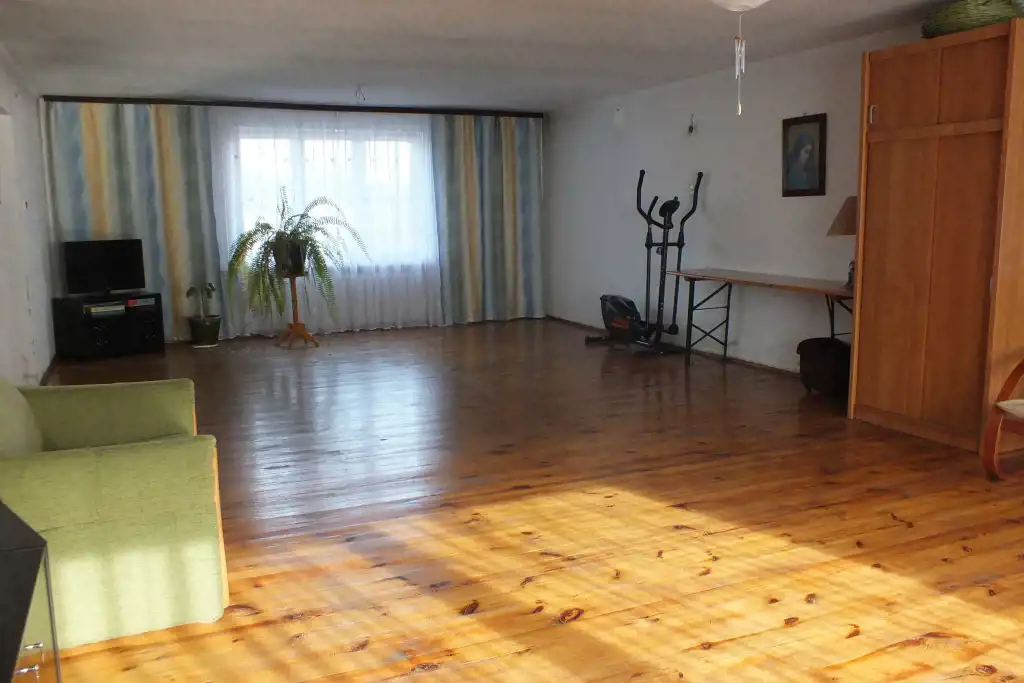 - II kondygnacja: dwa wejścia z byłych pomieszczeń biurowych do 7 pokoi, w tym dwa największe, sąsiadujące z sobą o wymiarach 5 m x 10 m.; wymienione okna, są PCV; rozprowadzona instalacja elektryczna, wodo-kanalizacyjna i CO; podłogi panele i trakota