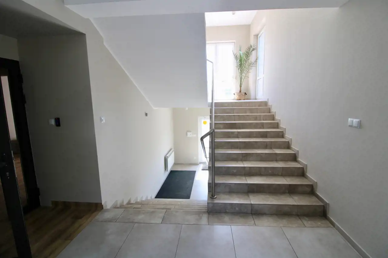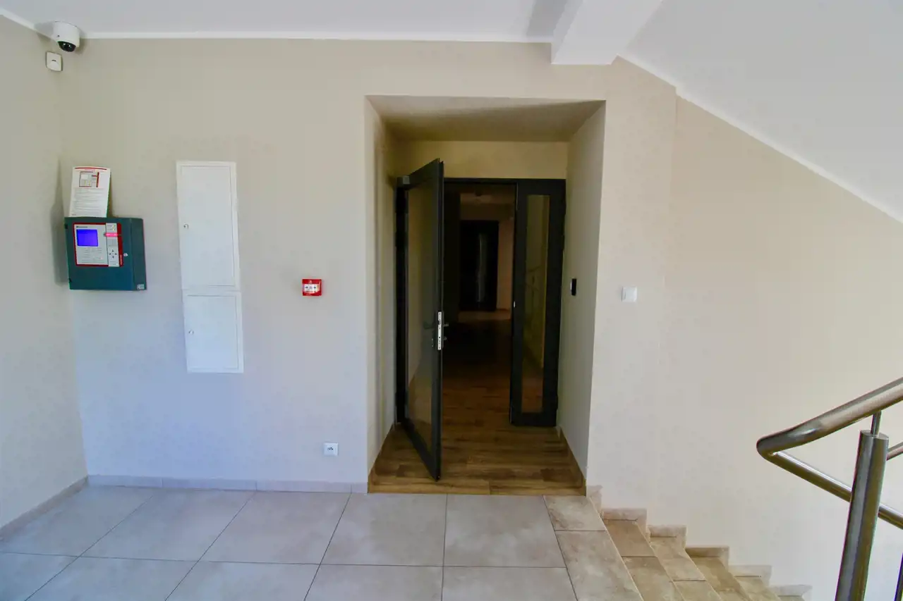 Budynek klimatyzowany, z monitoringiem i ogrodzonym parkingiem. Szeroka klatka schodowa.