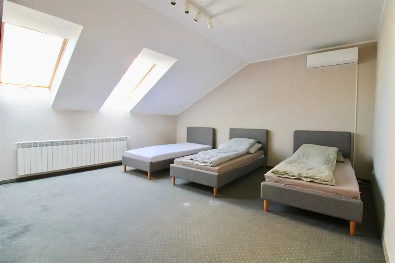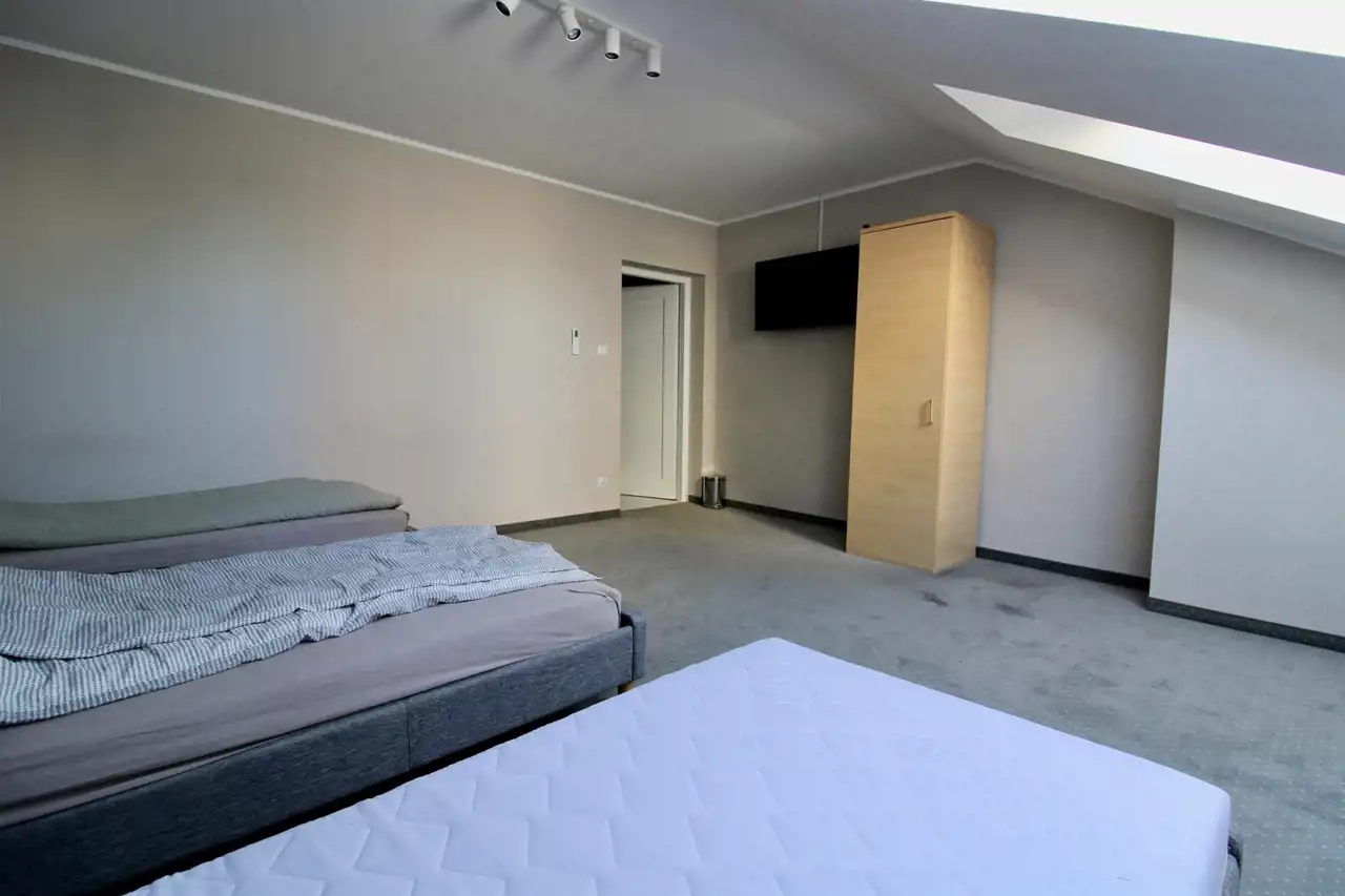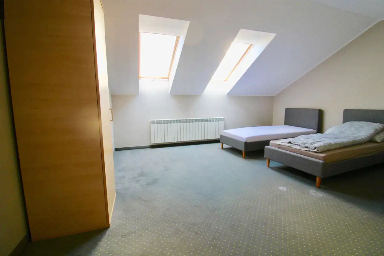 Na najwyższej kondygnacji znajduje się apartament z 2 sypialniami, łazienką, toaletą, kuchnią z jadalnią i salonem. Łącznie ok 35 miejsc.