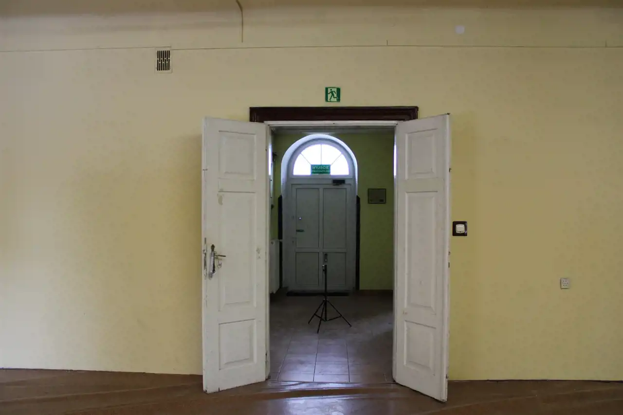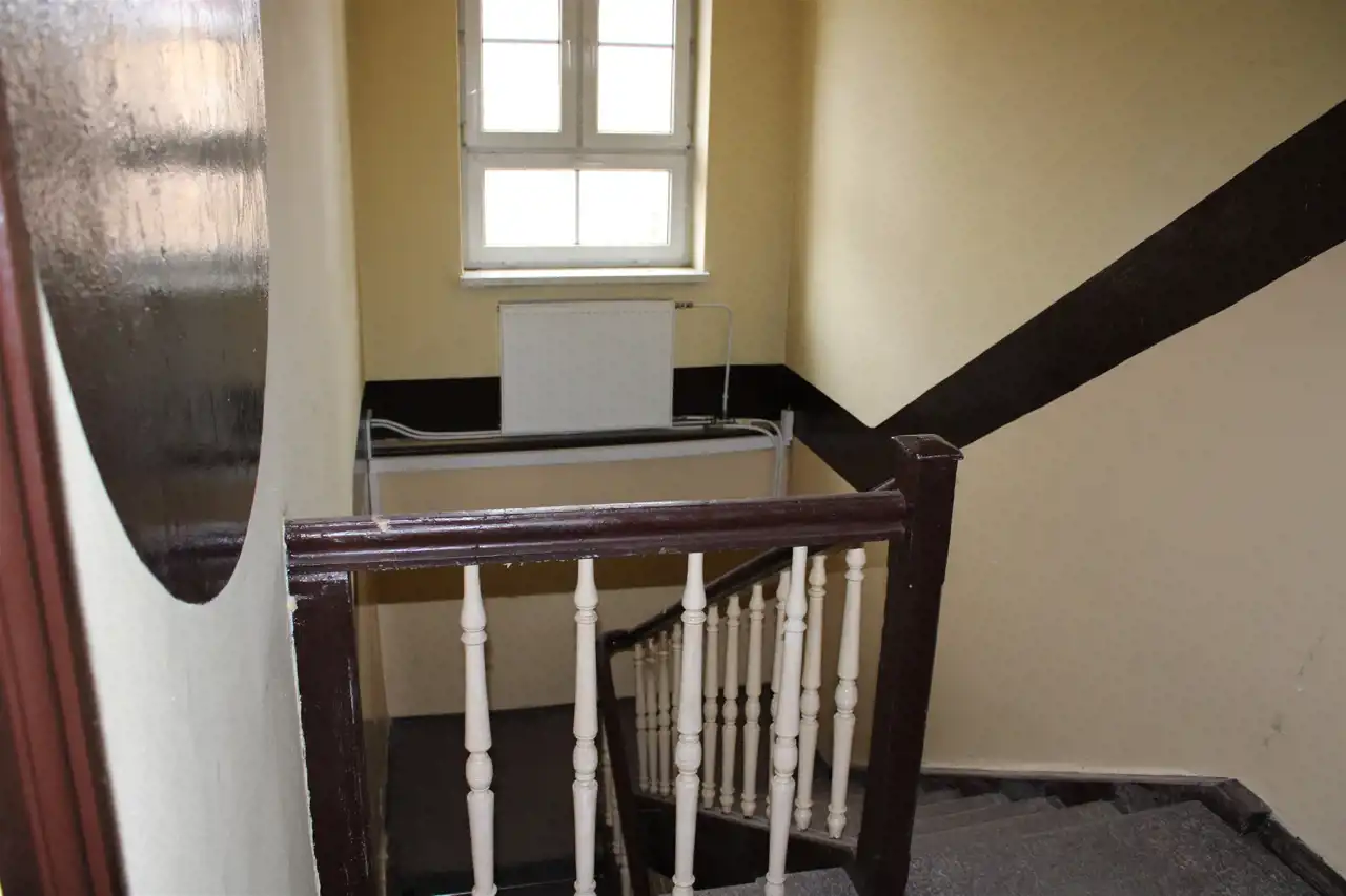 Na pierwsze piętro prowadzą stare drewniane, stylowe schody.Na piętrze znajduje się sześć pomieszczeń użytkowych oraz toaleta.