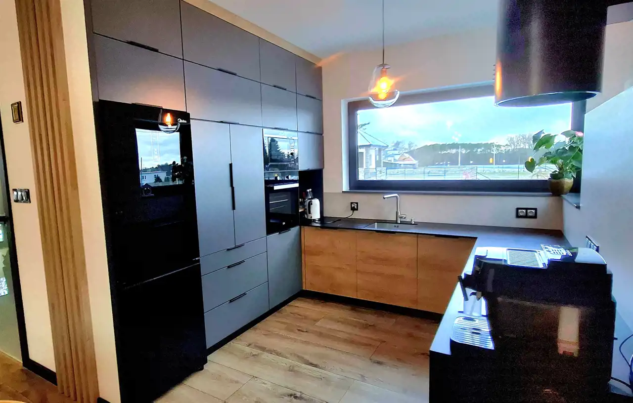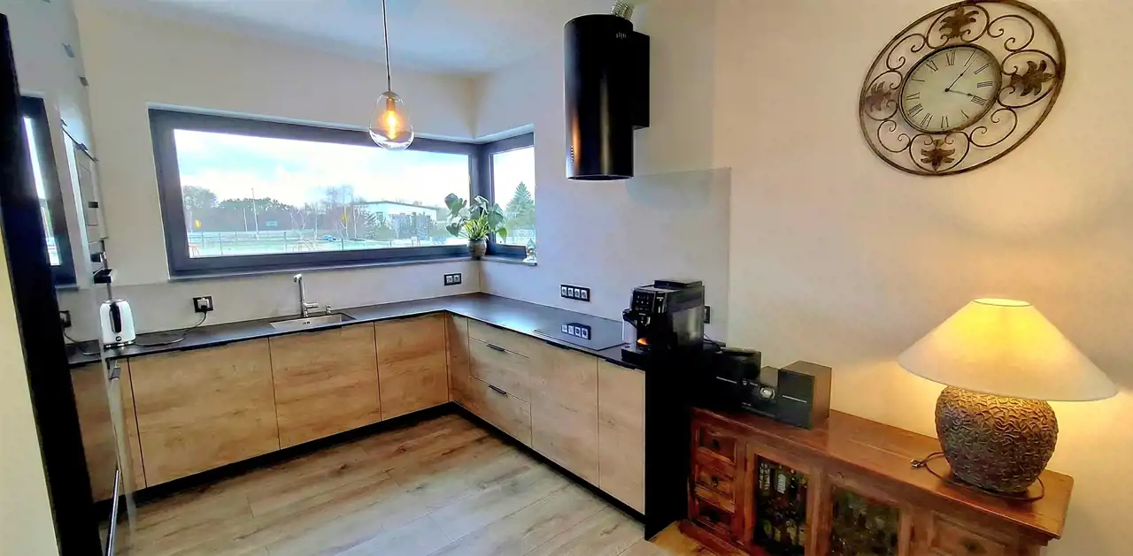 Kuchnia i jadalnia to serce domu – nowoczesna, w pełni wyposażona przestrzeń, w której poranki zaczynają się kawą i śniadaniem przy dużym stole, a wieczory kończą rozmowami przy kolacji. Wszystko jest na swoim miejscu – zaprojektowane, wykonane i gotowe na przyjęcie nowych właścicieli.