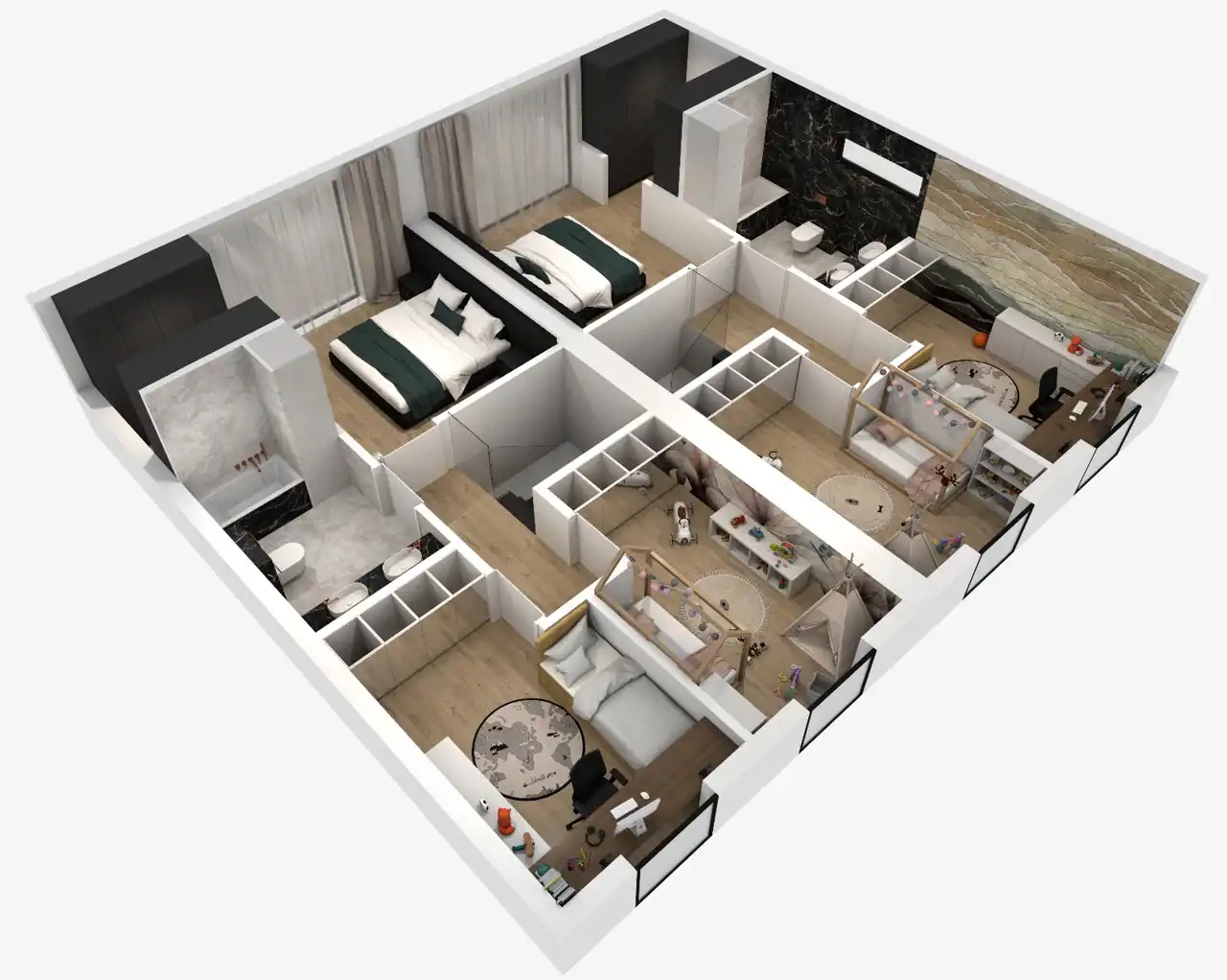 - Charakterystyka mieszkania 103 m2, 4 pokoje, do wykończenia