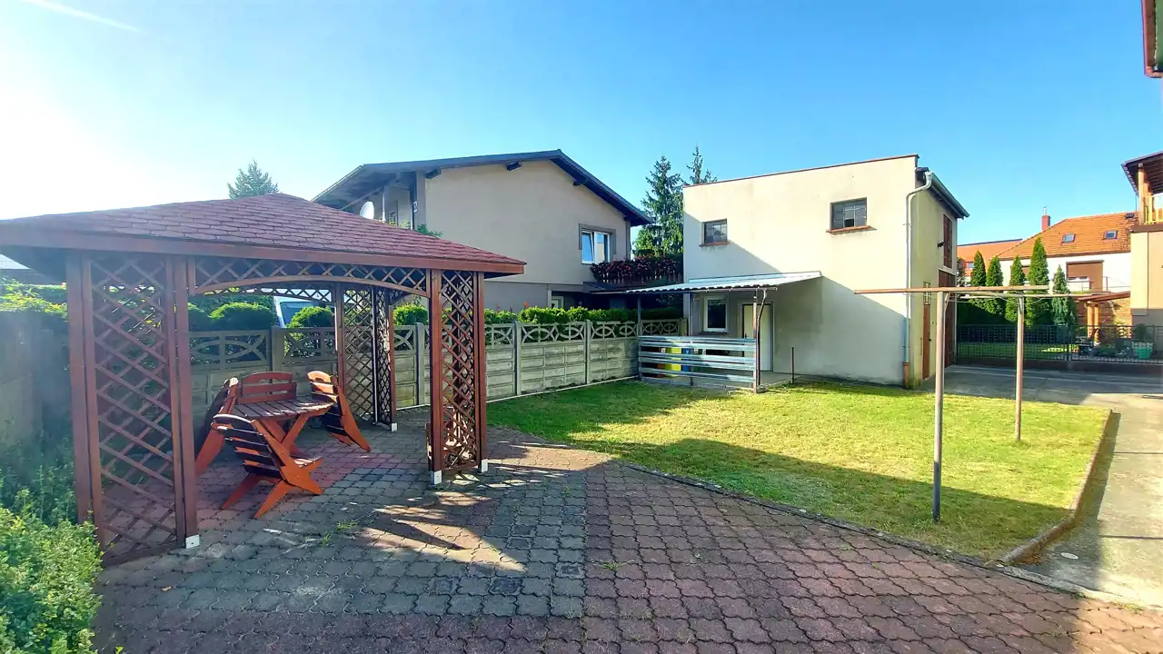 Ogród to idealne miejsce do spędzenia wolnego czasu np. przy grillu z rodziną i znajomymi i relaksu po pracy, dzięki zadaszonemu tarasowi.