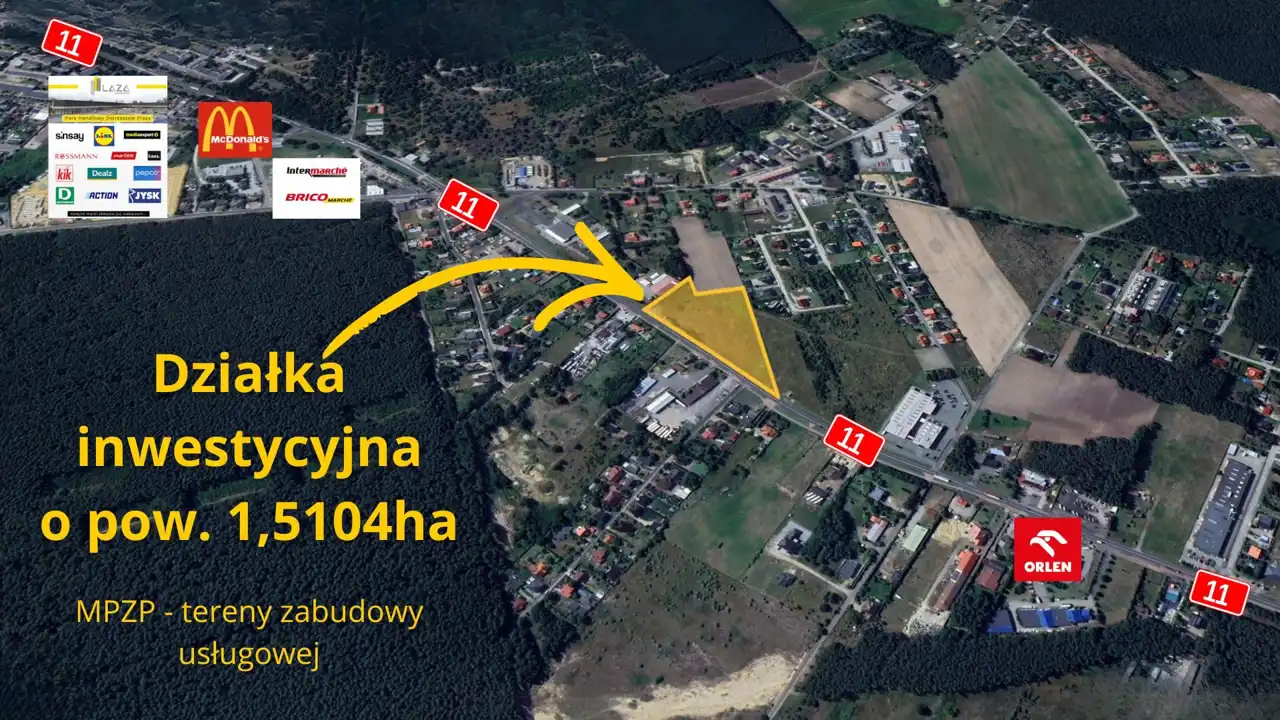 Atrakcyjna działka inwestycyjna przy DK 11 – 1,51ha, teren usługowy, świetna ekspozycja
