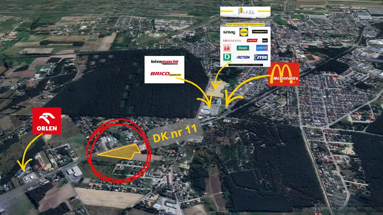 Bezpośrednie położenie przy drodze krajowej zapewnia doskonałą widoczność oraz bardzo duży ruch samochodowy, co jest niezwykle ważne dla inwestycji komercyjnych.