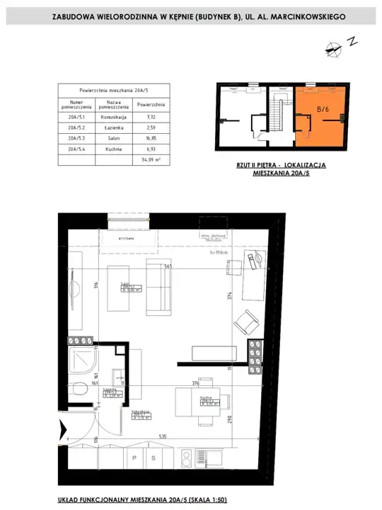 - Charakterystyka mieszkania 34.09 m2, 1 pokój