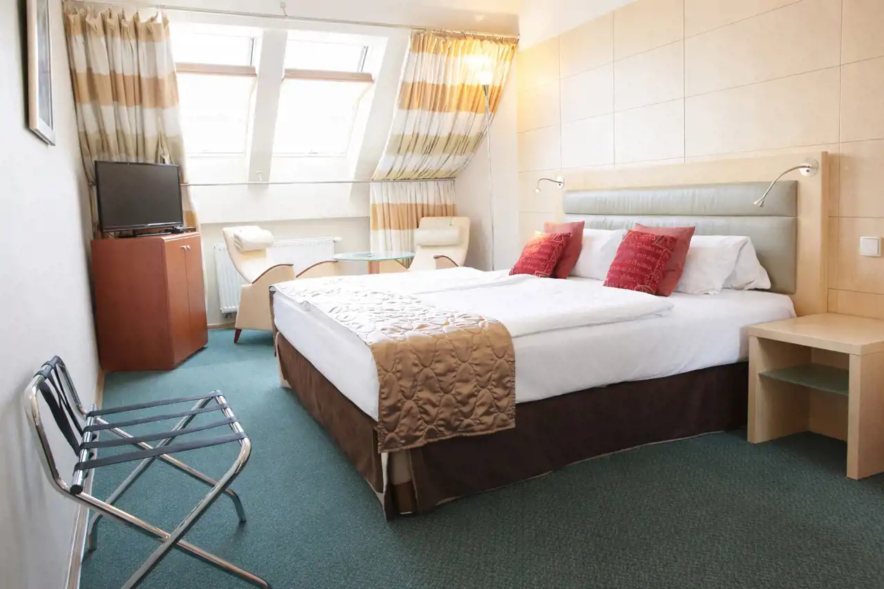 Na II piętrze znajduje się część hotelowa obejmująca 7 pokoi z łazienkami oraz pomieszczenia pomocnicze. Pokoje wyposażone są w profesjonalne meble hotelowe, a pokoje od frontu budynku posiadają tarasy.