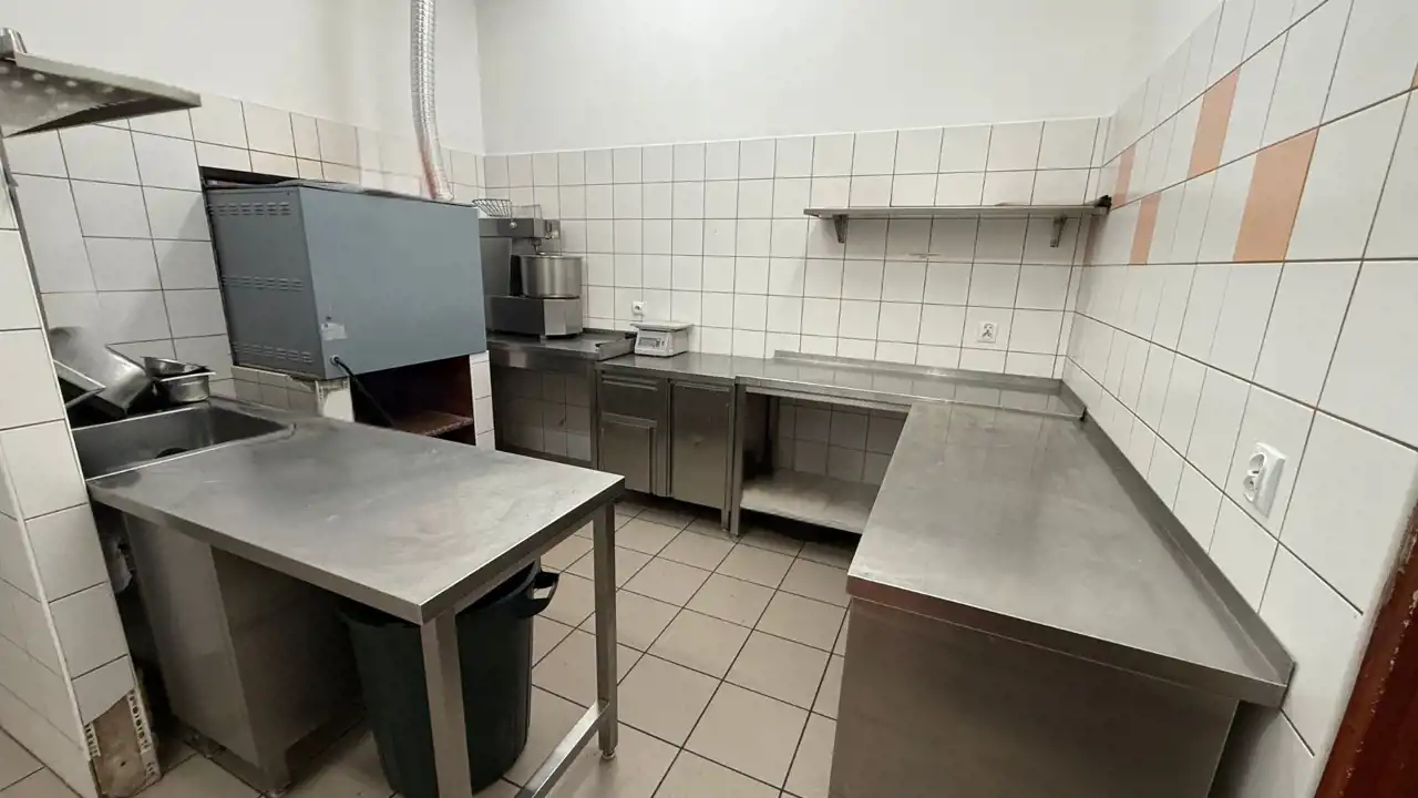 Na parterze znajduje się pizzeria wraz z pełnym zapleczem kuchennym, socjalnym i magazynowym, co umożliwia sprawną obsługę dużej liczby klientów.