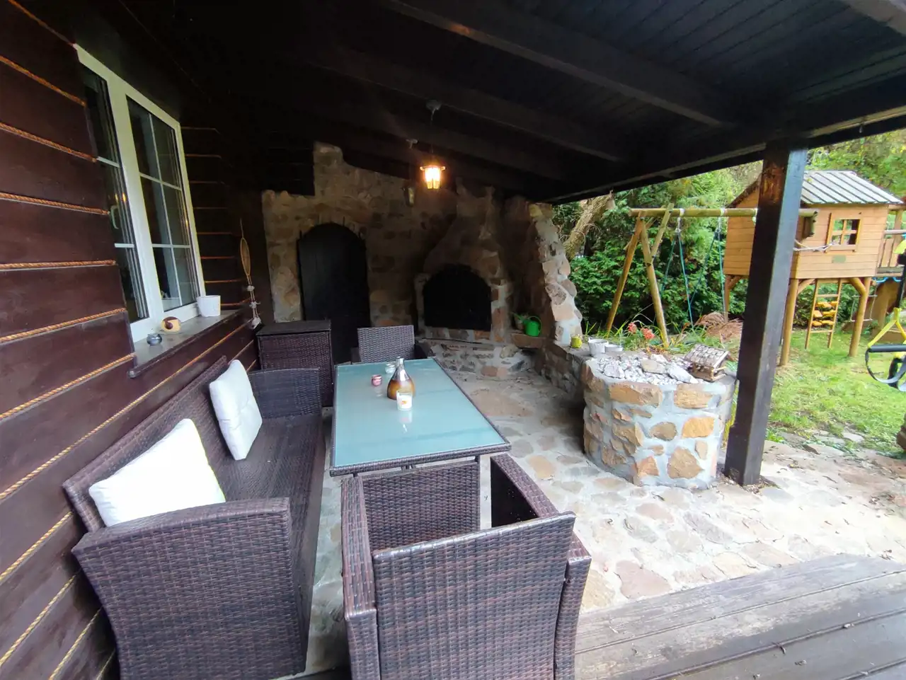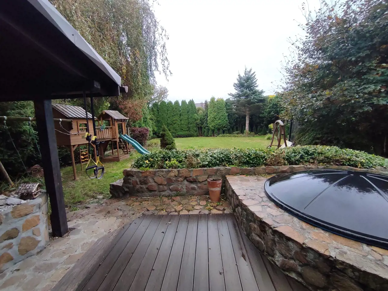 - drewniany domek dla dzieci i huśtawka ogrodowa.