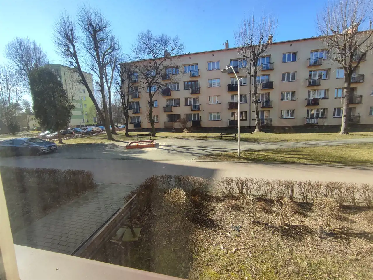 - salonu z wyjściem na niewielki balkon, z którego roztacza się piękny widok na otwartą przestrzeń i osiedle