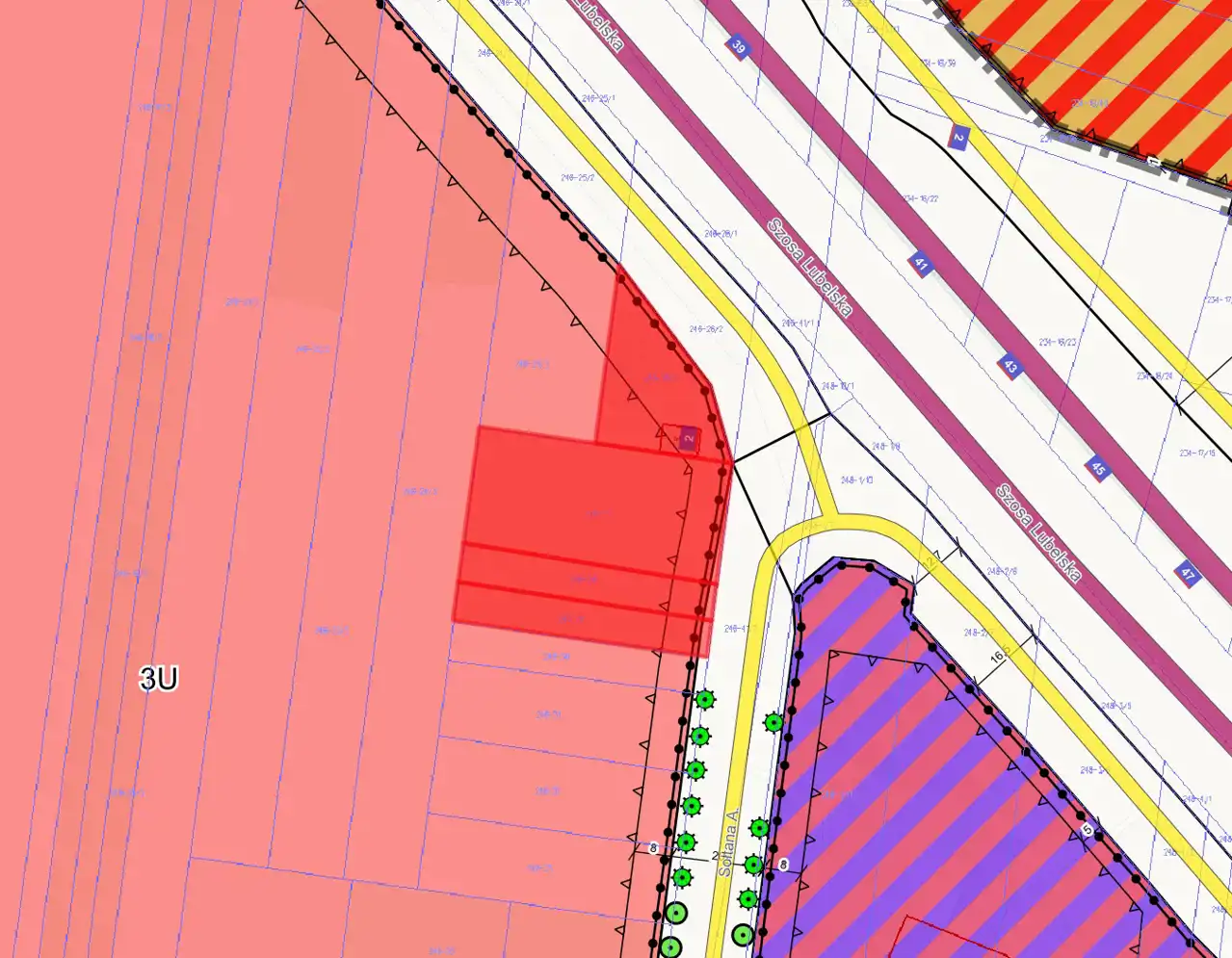 Działka jest objęta miejscowym planem zagospodarowania przestrzennego pod tereny zabudowy usługowej: