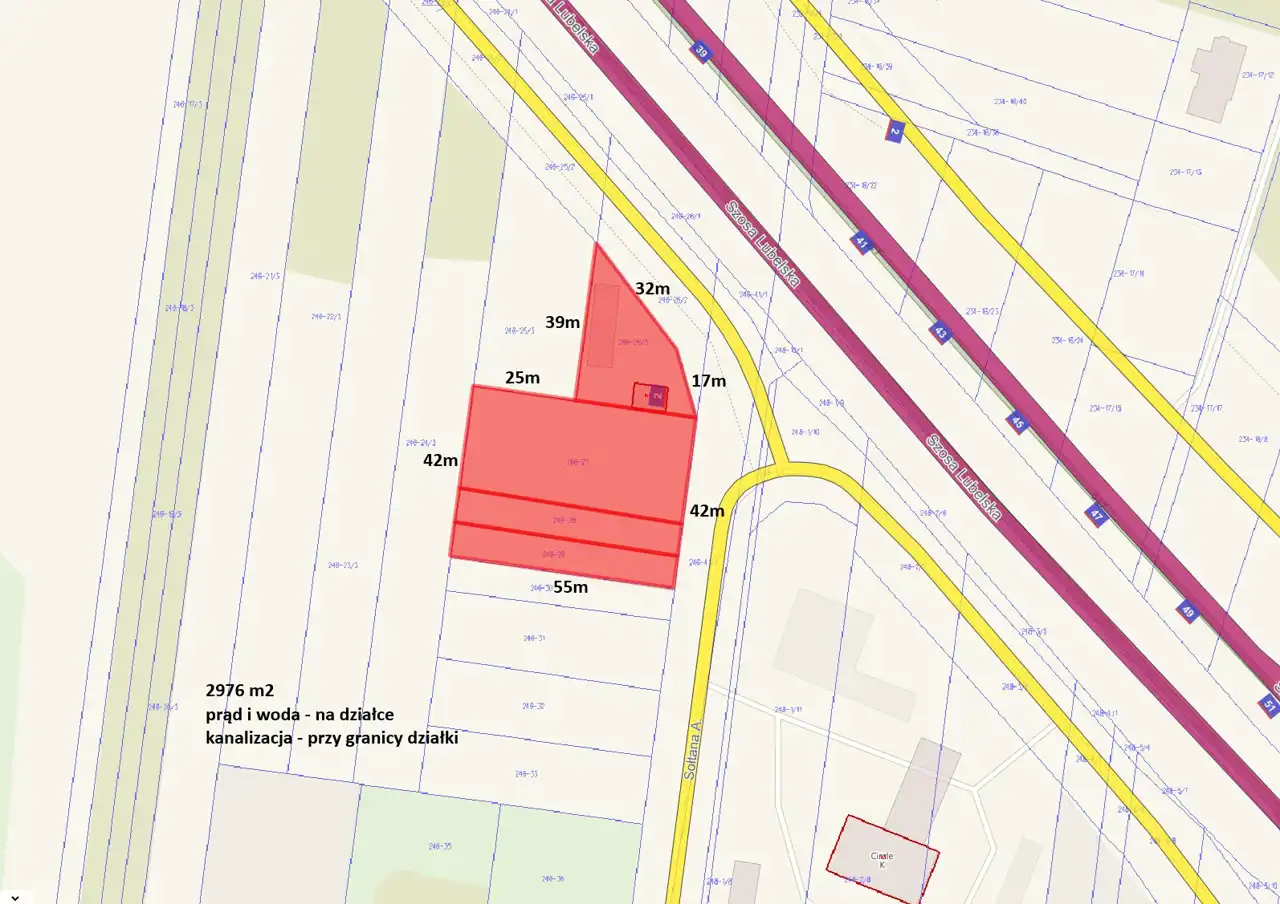 - Media Woda: na działce; Kanalizacja: w ulicy; Prąd: na działce; Gaz: brak