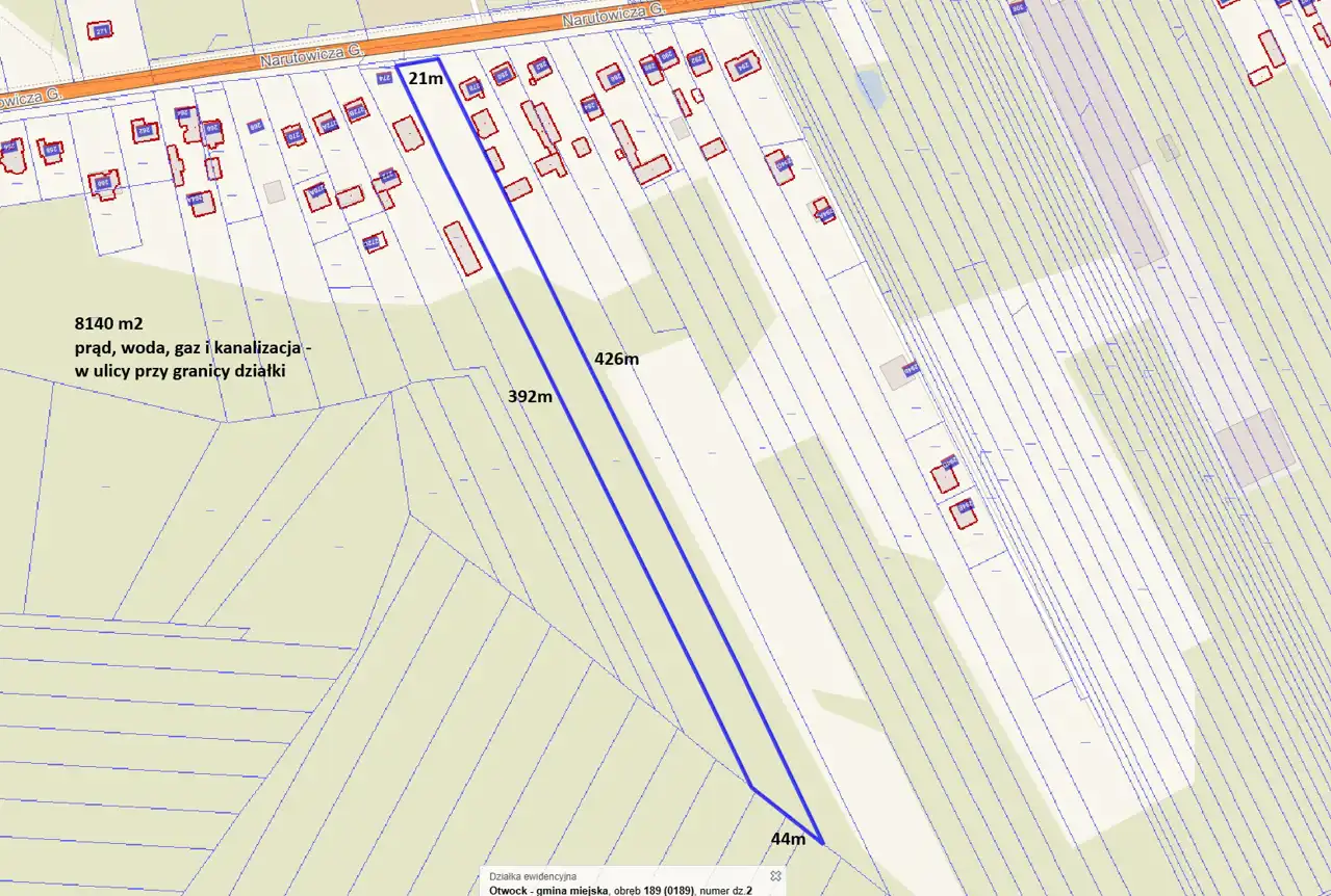 - Media Woda: w ulicy; Kanalizacja: w ulicy; Prąd: w ulicy; Gaz: w ulicy