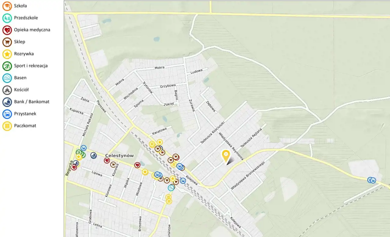 - 500 m do stacji kolejowej PKP Celestynów