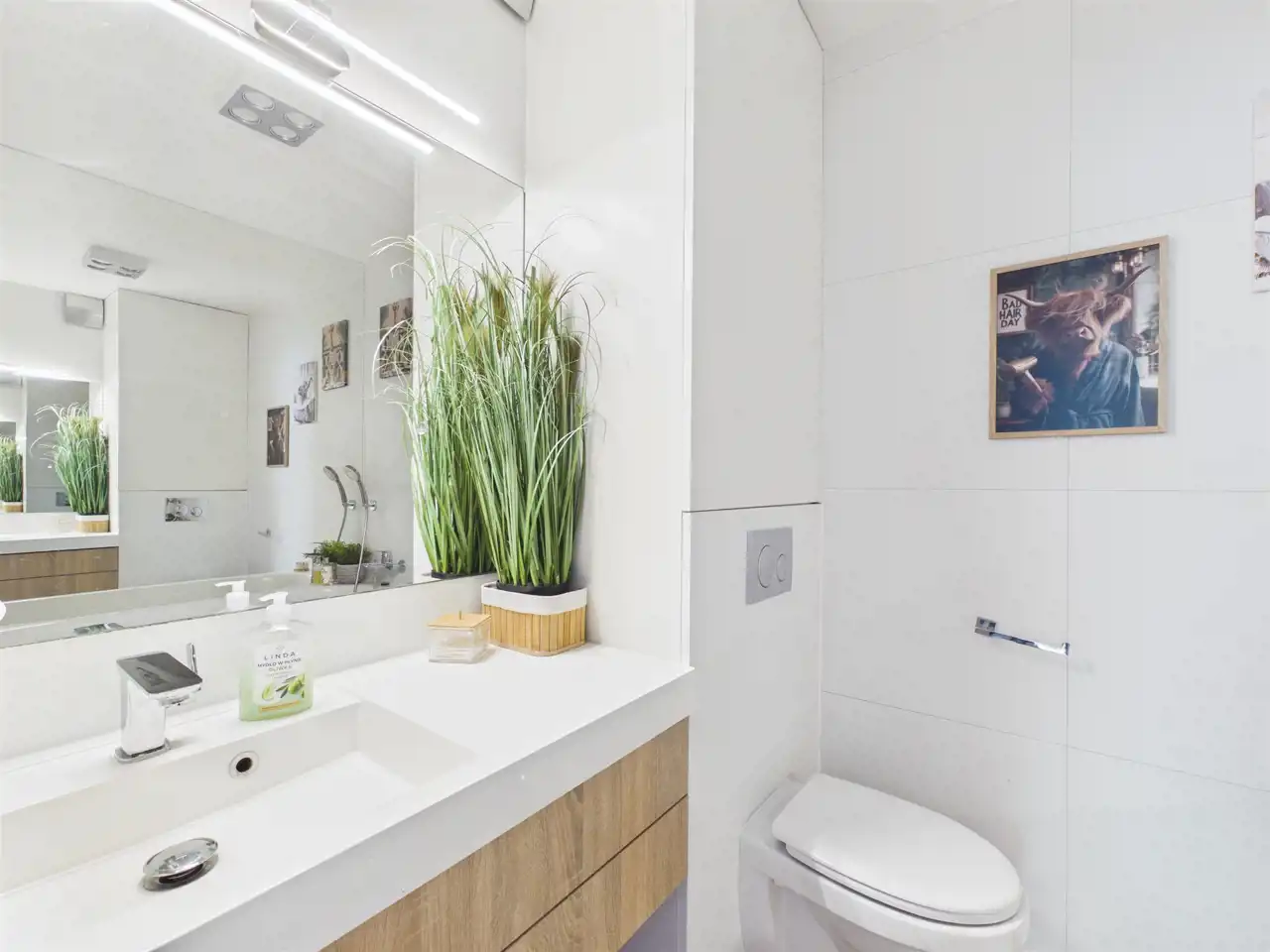 Mieszkanie zostało wykończone z wykorzystaniem wysokiej jakości materiałów, z dbałością o spójność stylistyczną i funkcjonalność.