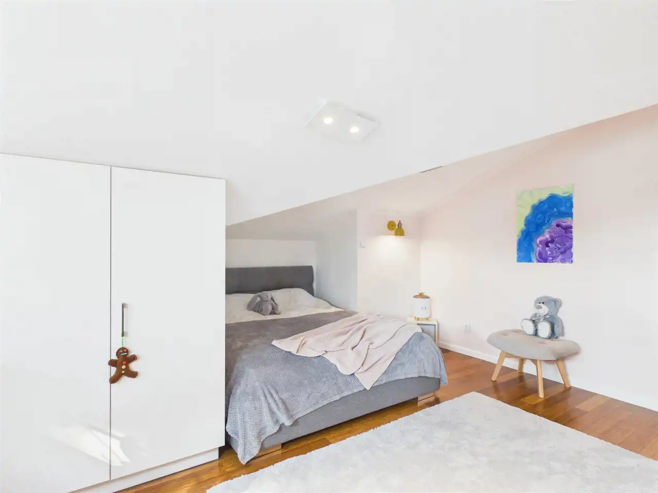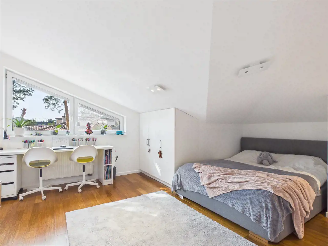 Dwupoziomowy układ zapewnia wyraźny podział na część dzienną i prywatną, co znacząco podnosi komfort codziennego życia – idealne rozwiązanie dla rodzin lub osób pracujących zdalnie.