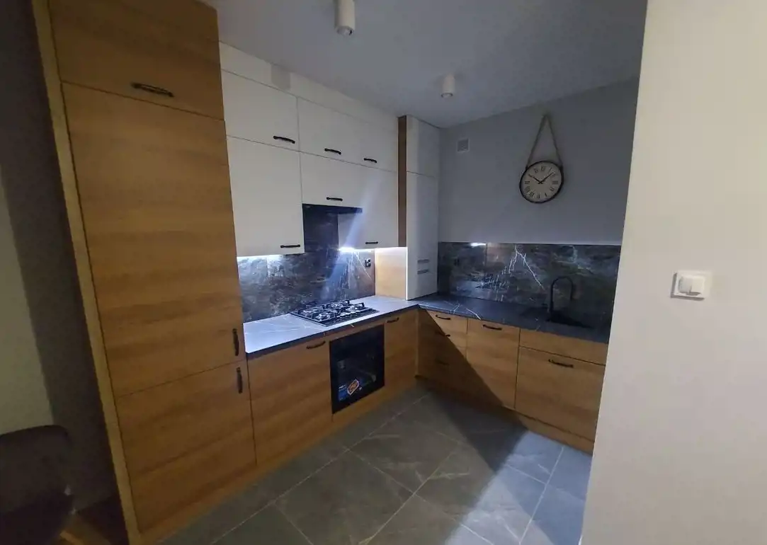 Wykończenie i wyposażenie: mieszkanie przeszło generalny remont. Wymieniono instalacje: wodno-kanalizacyjna, gazowa, elektryczną (wraz z bezpiecznikami i przewodem WLZ) Na ścianach położono gładzie, podłogi-panele oraz gres wysokiej jakości. Kuchnia w zabudowie, wyposażona w meble na wymiar, płytę gazowa, lodówka, zmywarkę oraz sprzęt AGD-Beko. W łazience znajduje się prysznic, umywalka oraz CW, na podłodze położony gres.