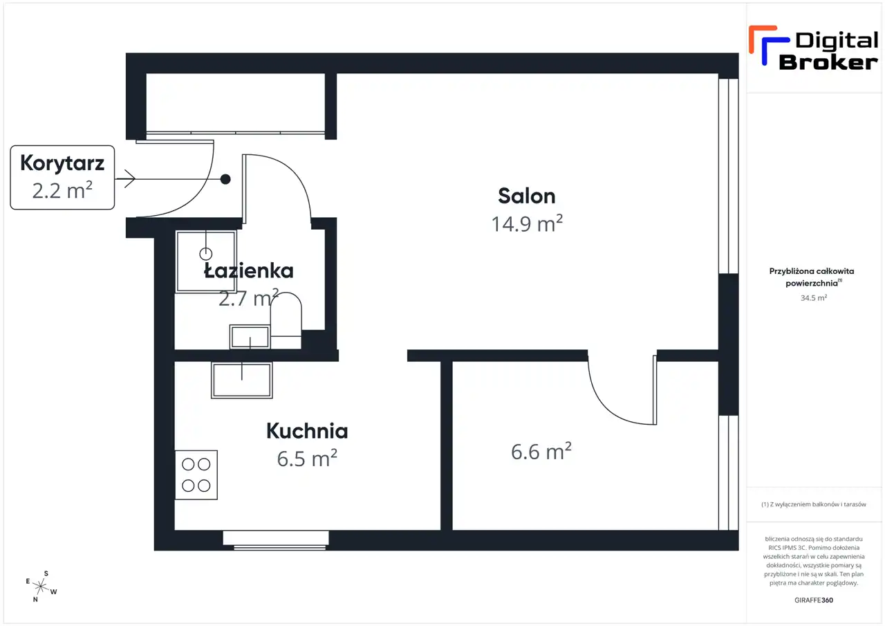 - Charakterystyka mieszkania 34.58 m2, 2 pokoje