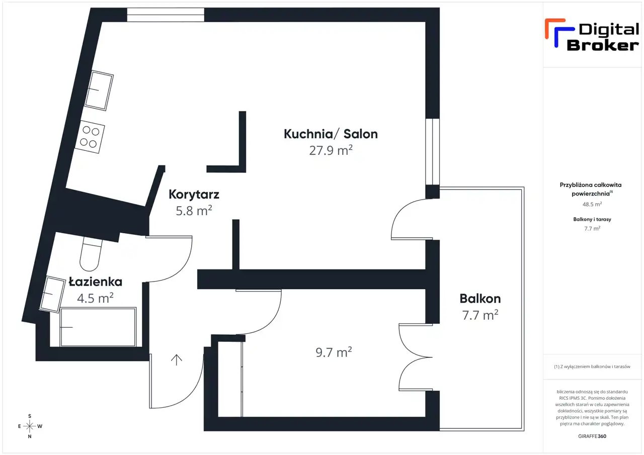 - Charakterystyka mieszkania 51.62 m2, 2 pokoje
