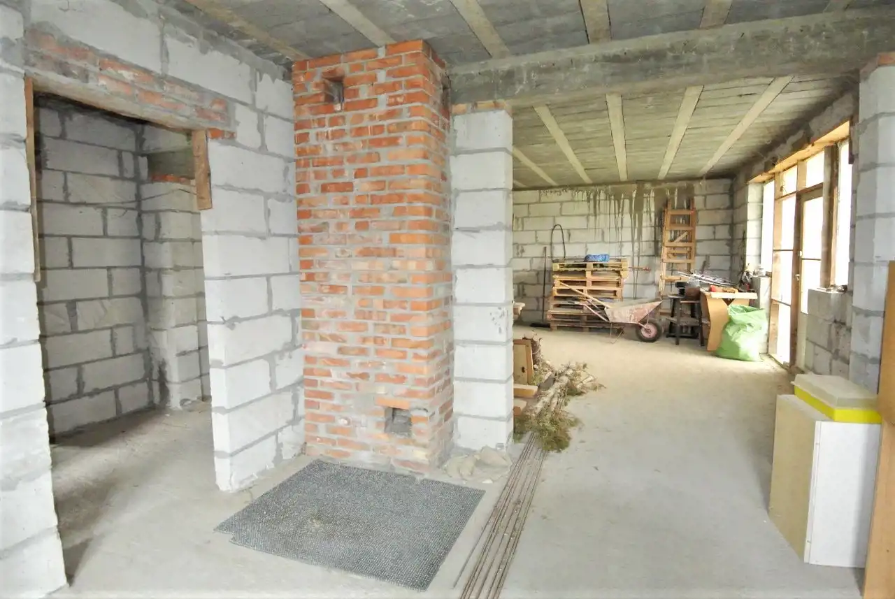 Stan budynku: surowy. Materiał konstrukcyjny pustak, okna PCV. Ogrzewanie gazowe.