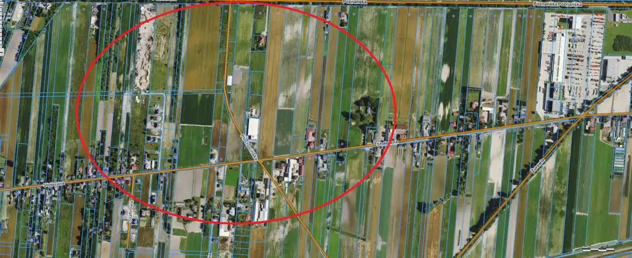 Teren nieogrodzony, niezagospodarowany i uporządkowany. W okolicy rejon zabudowy mieszanej. Nieruchomość położona ok. 150 m od ulicy Poznańskiej, gdzie w pierwszej linii dominuje zabudowa usługowa i produkcyjna.