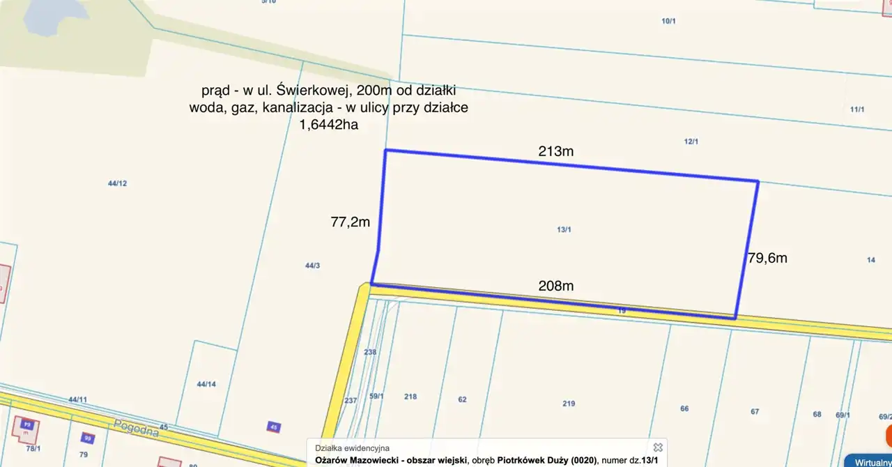 prąd - w ul. Świerkowej, około 200m od działki