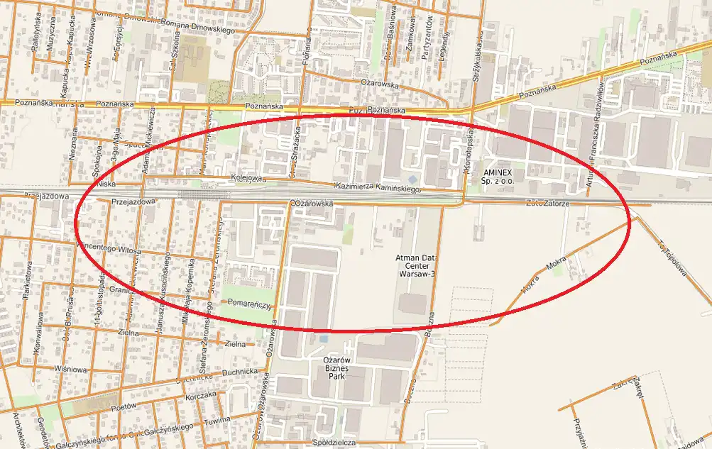 Do stacji PKP Ożarów Mazowiecki ok. 400 m.