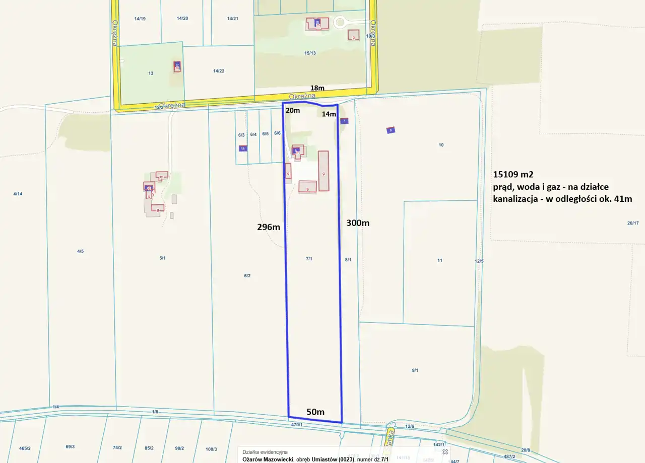 Na sprzedaż również okoliczna działka (numer ewidencyjny 10) o powierzchni 16520 m2 za cenę 300 zł/m2.